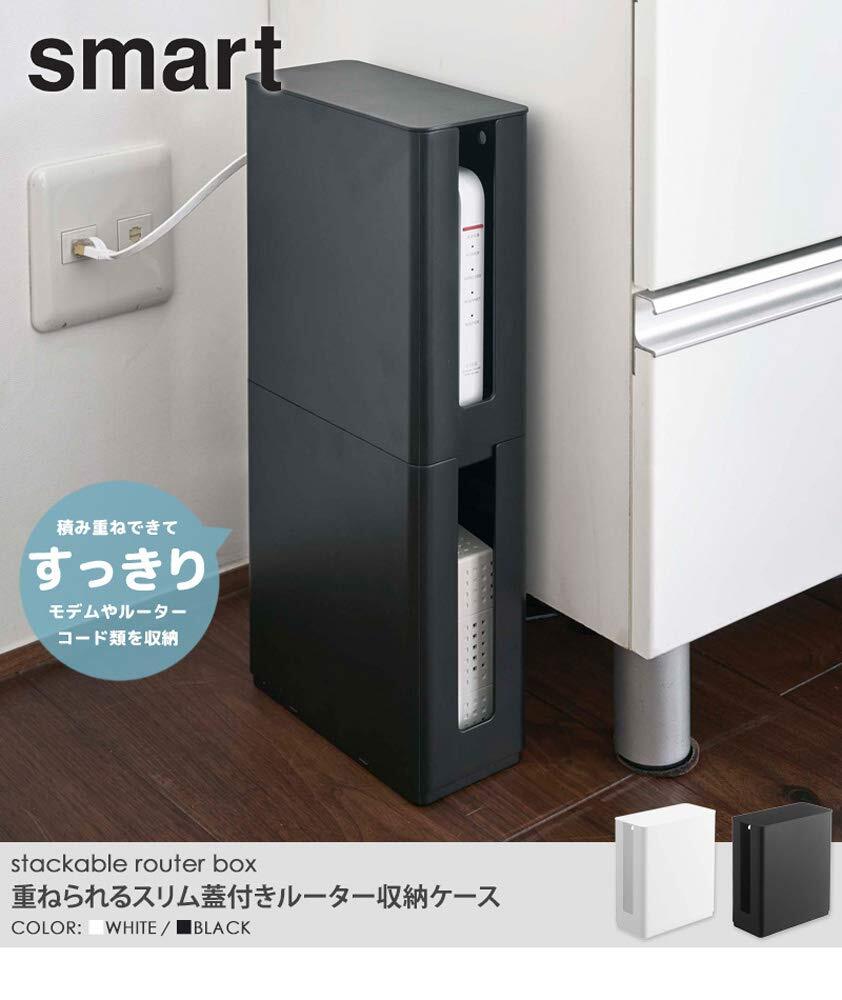 そんなネットワーク機器にありがちなお悩みを解消できるのがこちら、「重ねられるスリム蓋付きルーター収納ケース・スマート」です。