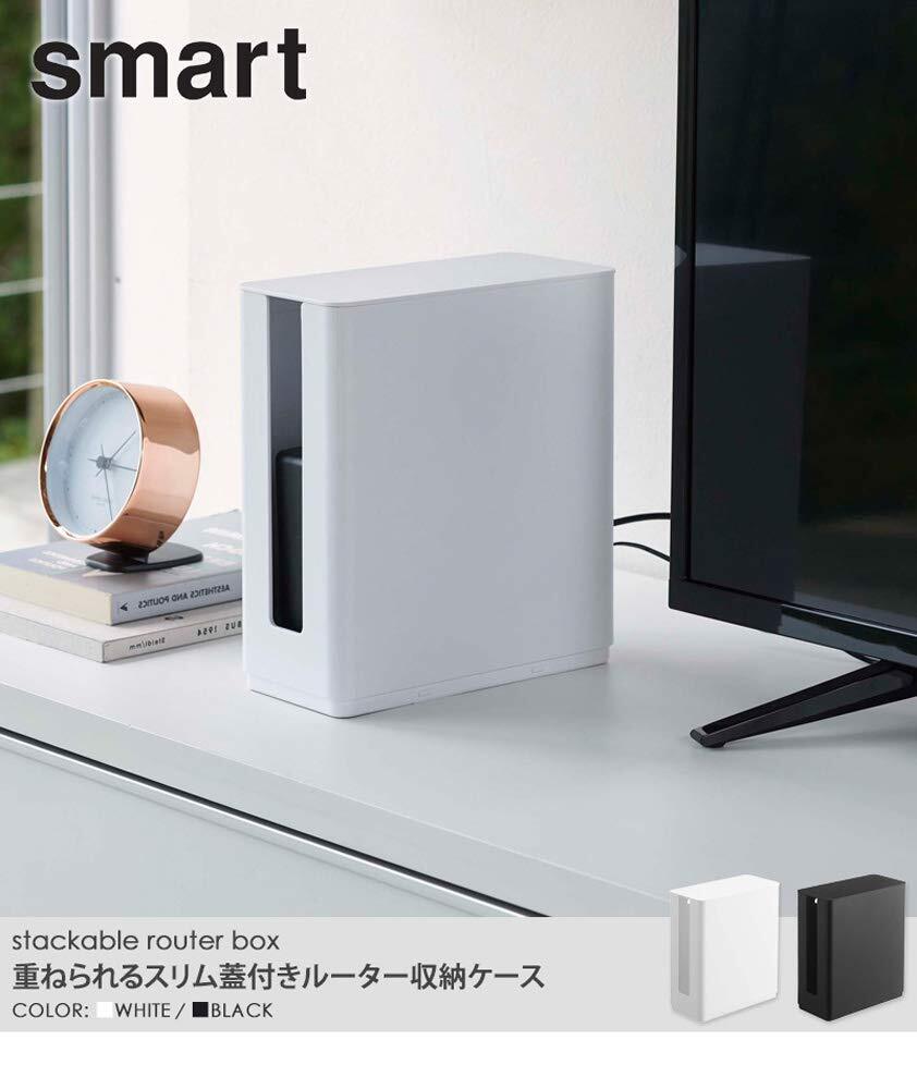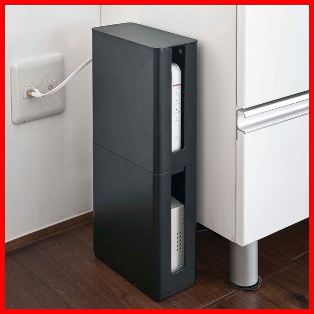 山崎実業(Yamazaki) 重ねられるスリム蓋付きルーター収納ケース 【2個セット】 収納 モデム ルーターボックス ブラック 4914×2
