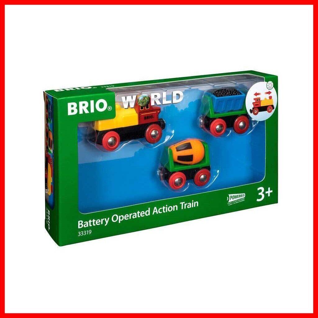 BRIO (ブリオ) WORLD バッテリーパワーアクショントレイン [全3ピース] 対象年齢 3歳~ (電車のおもちゃ 木のレール 電動 機関車) 33319