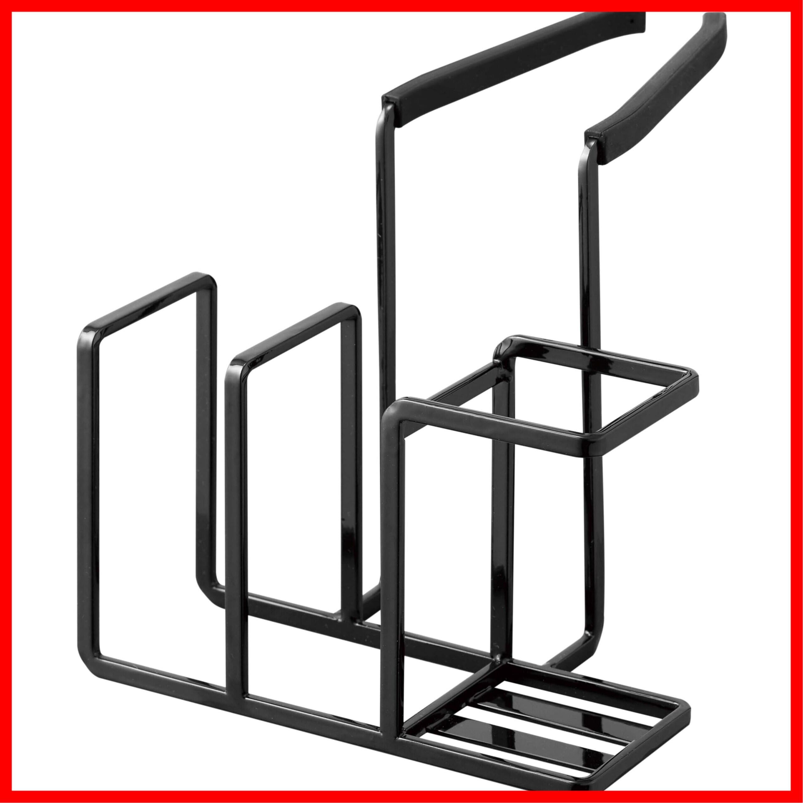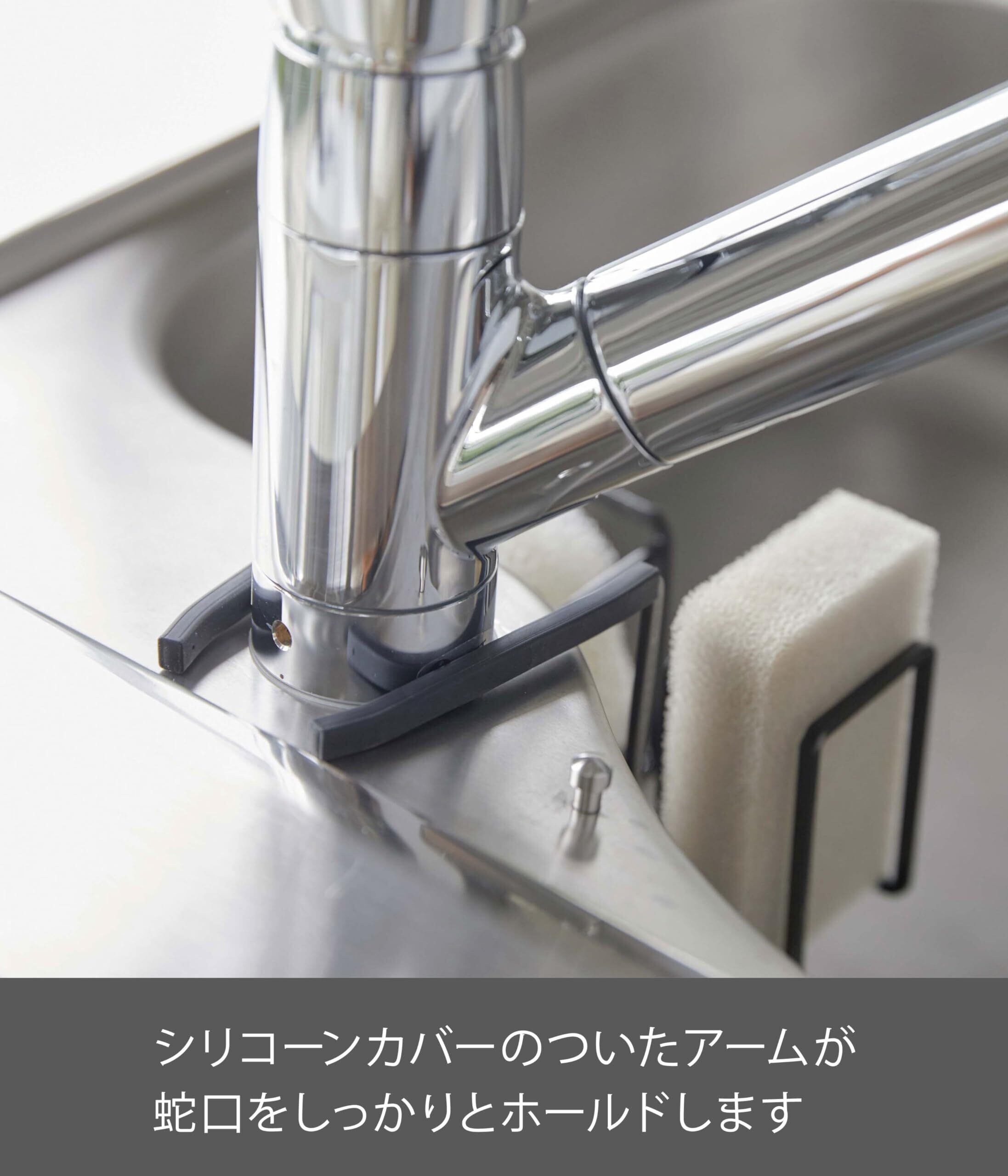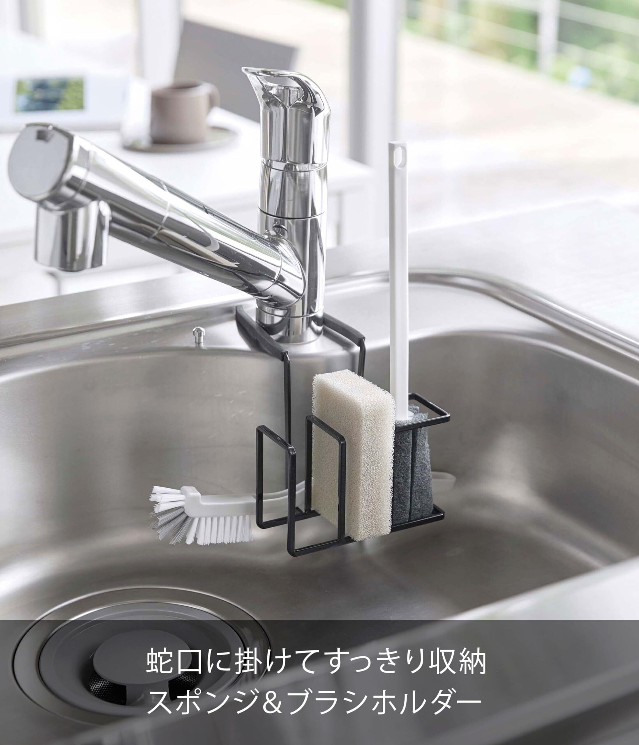 山崎実業(Yamazaki) 蛇口にかけるスポンジ&ブラシホルダー ブラック 約W14XD17.5XH13cm タワー スポンジ置き ラック ブラシスタンド 5081
