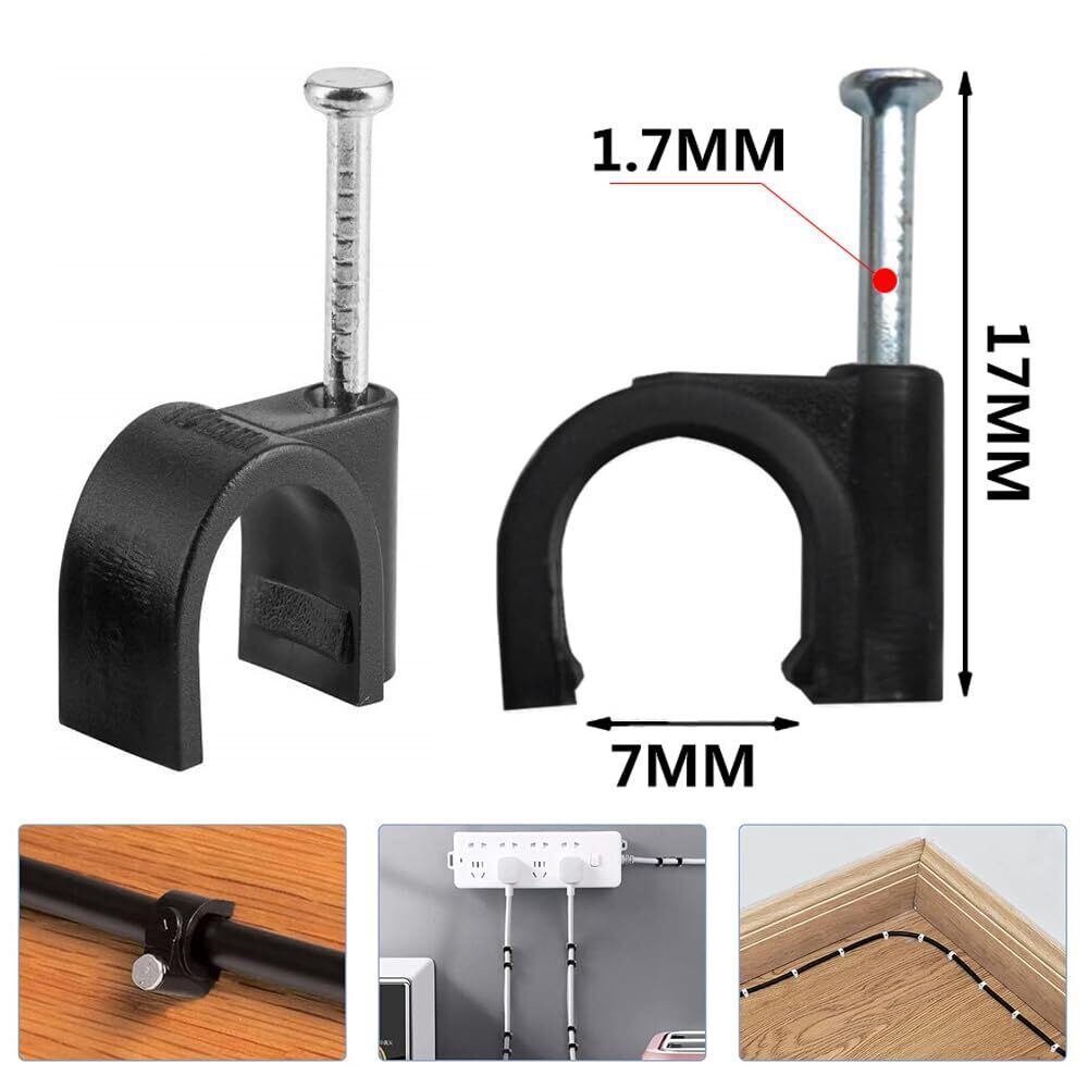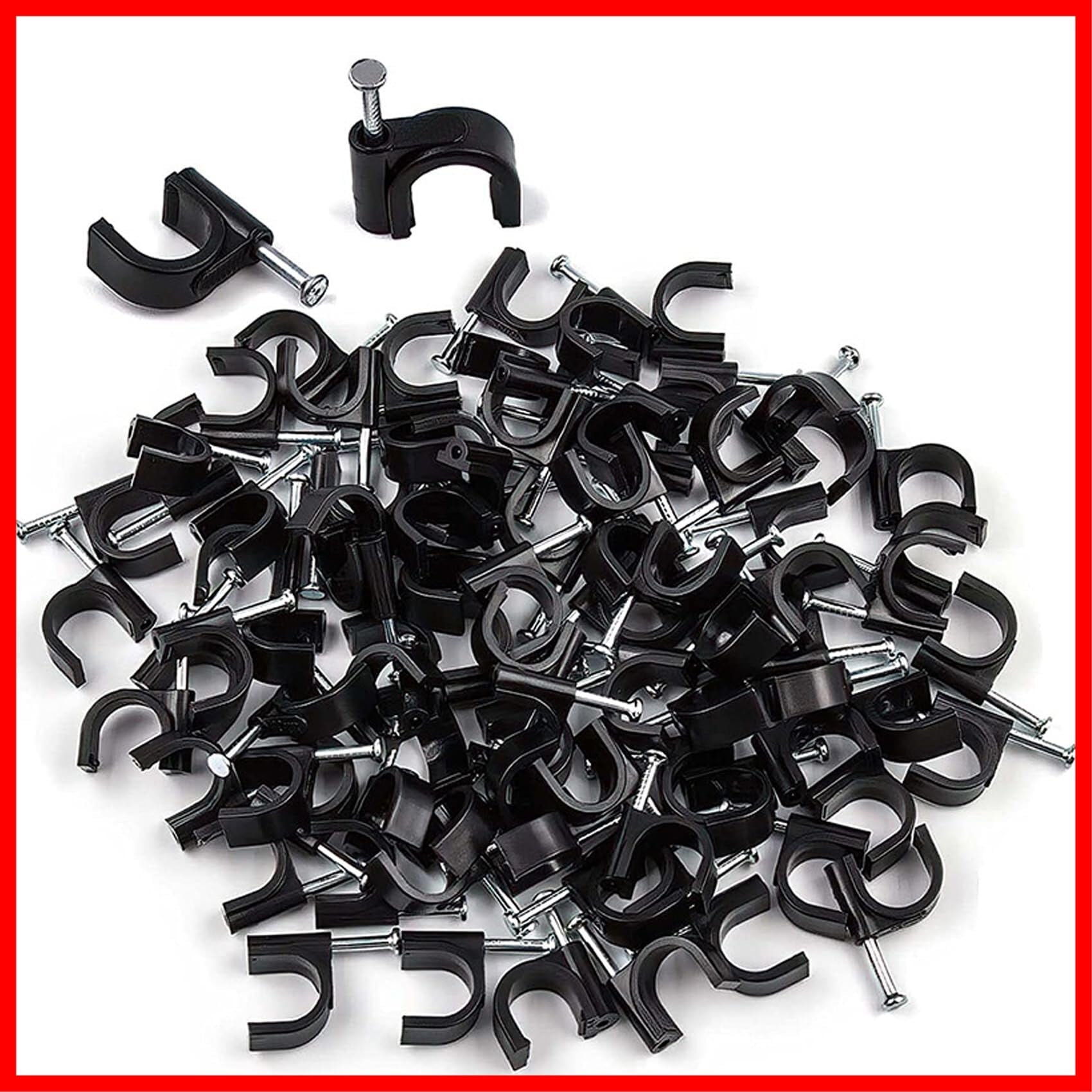 コードとめ具 壁 100個 7mm コード止め プラスチック 壁 アンテナ線 LANケーブル用 耐老化 配線止め ケーブル 固定 配線収納 延長コード 壁に固定 家庭用 オフィス用 倉庫 船舶用 ブラック