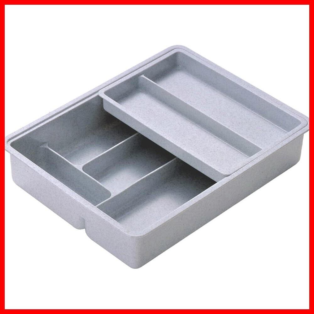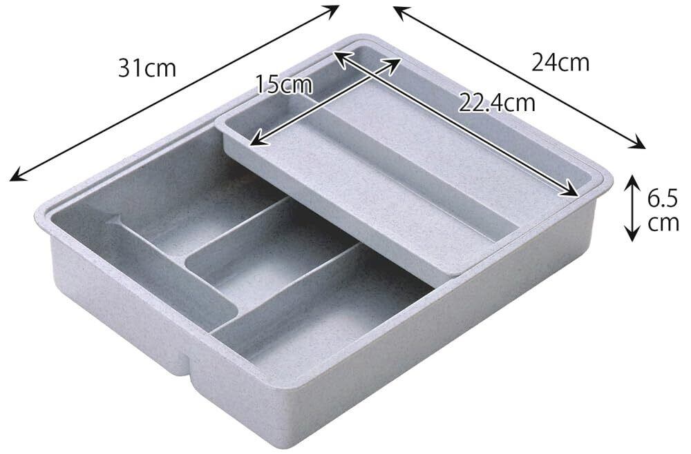 下村企販 カトラリーケース 仕切り付き スライド式 【日本製】 引き出し 整理トレー 2段 食器棚 収納 箸入れ 抗菌 スプーン フォーク 文房具 雑貨 グレー ミカゲ 樹脂製 燕三条 14949 | hananoki