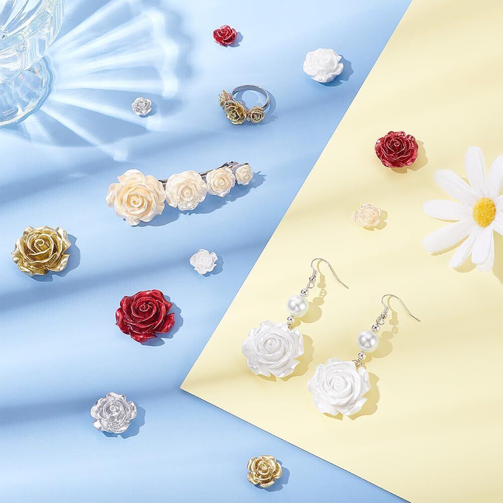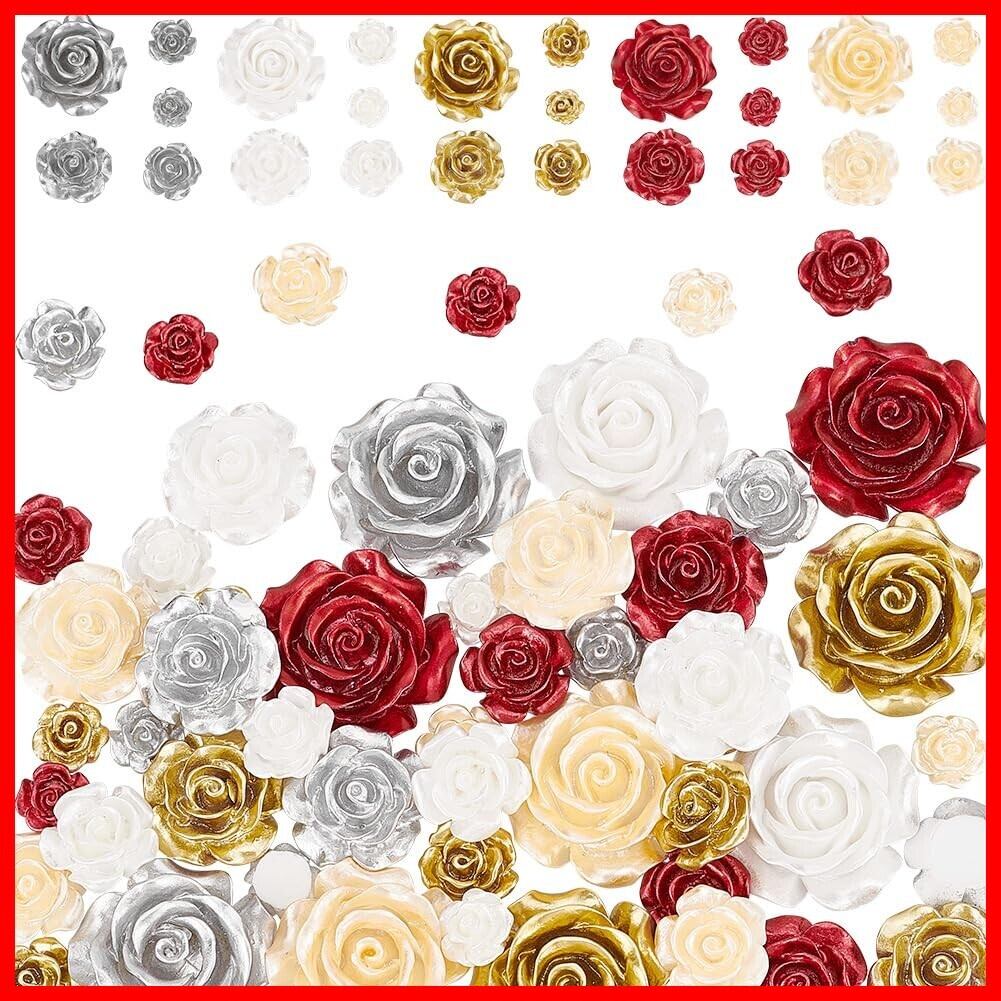 PH PandaHall カボション 花 薔薇 50個 5色 3D 立体的 レジンビーズ 花 バラ デコパーツ ローズ ヘアクリップ アクセサリーパーツ ジュエリー用 DIY ハンドメイド 手芸材料 手作り素材 クラフト用品 | hananoki