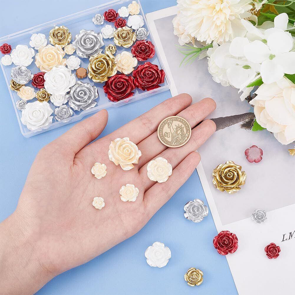 PH PandaHall カボション 花 薔薇 50個 5色 3D 立体的 レジンビーズ 花 バラ デコパーツ ローズ ヘアクリップ アクセサリーパーツ ジュエリー用 DIY ハンドメイド 手芸材料 手作り素材 クラフト用品