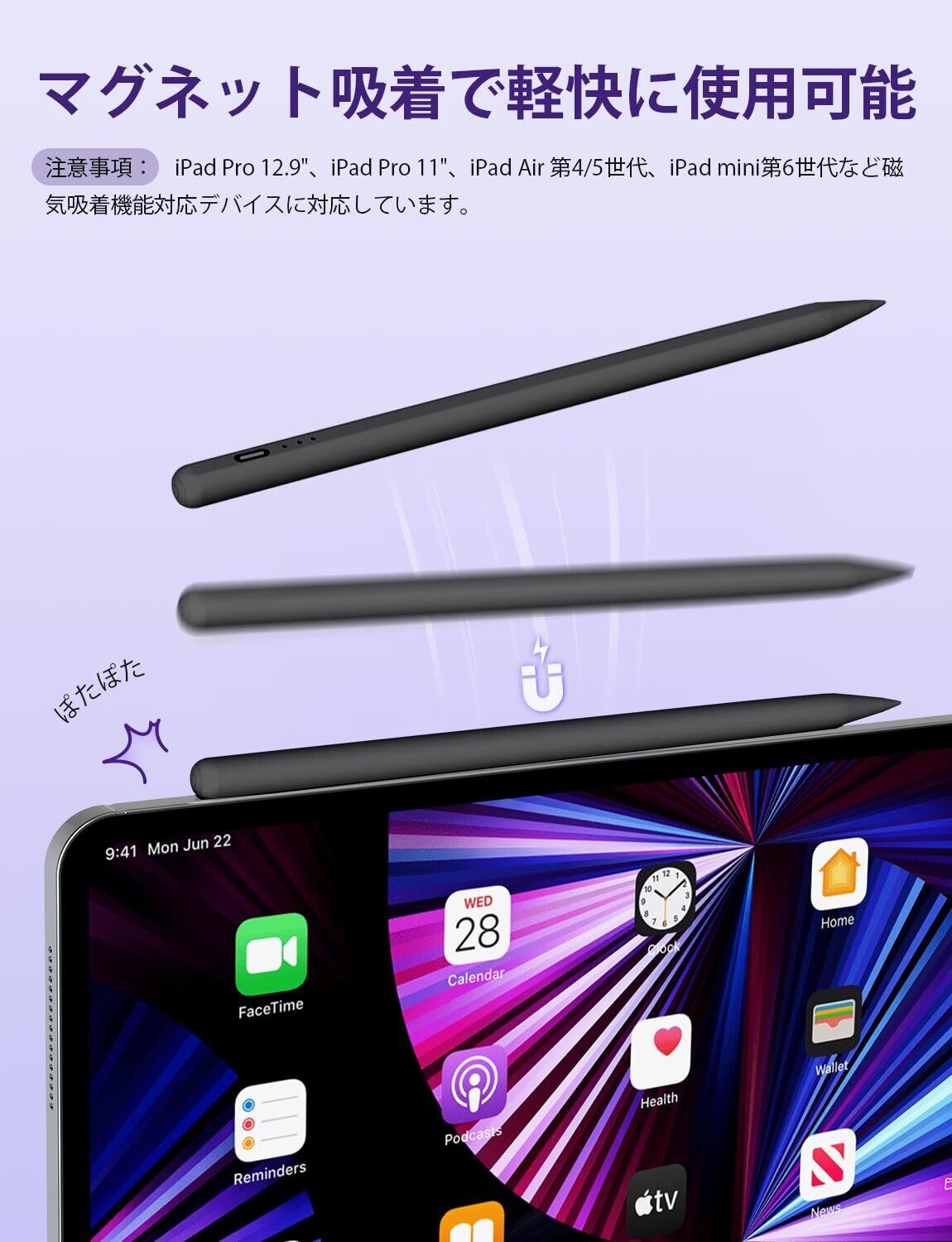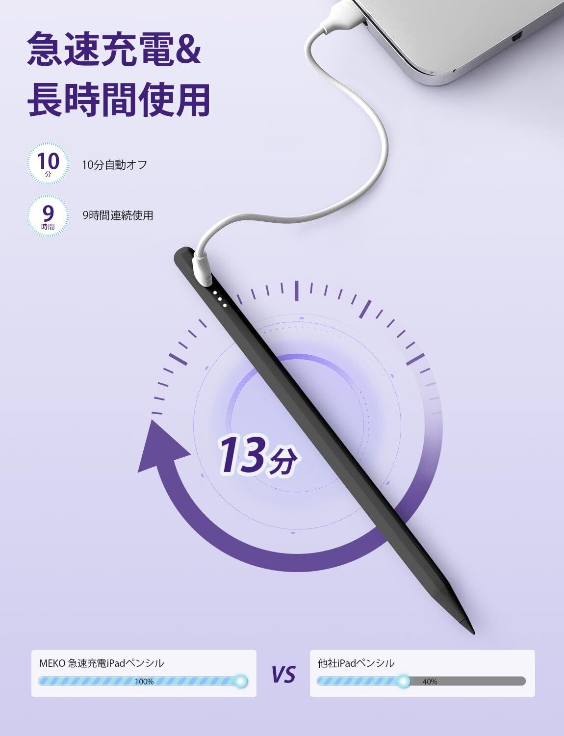 【13分超急速充電 バッテリー残量表示】MEKO iPad ペンシル iPad専用 タッチペン 傾き検知 磁気吸着 パームリジェクション機能 スタイラスペン Type-C充電式 超高精度 途切れなし iPad Pro M4/iPad Air M2&M3/iPad/iPad Air/iPad mini/iPad Pro 2018年以降iPadに対応 ペン先3枚付き ブラック