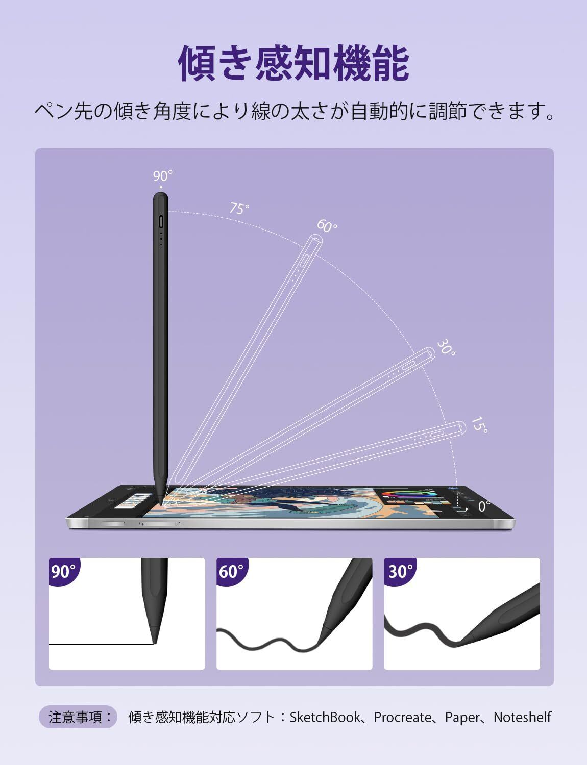【13分超急速充電 バッテリー残量表示】MEKO iPad ペンシル iPad専用 タッチペン 傾き検知 磁気吸着 パームリジェクション機能 スタイラスペン Type-C充電式 超高精度 途切れなし iPad Pro M4/iPad Air M2&M3/iPad/iPad Air/iPad mini/iPad Pro 2018年以降iPadに対応 ペン先3枚付き ブラック | hananoki
