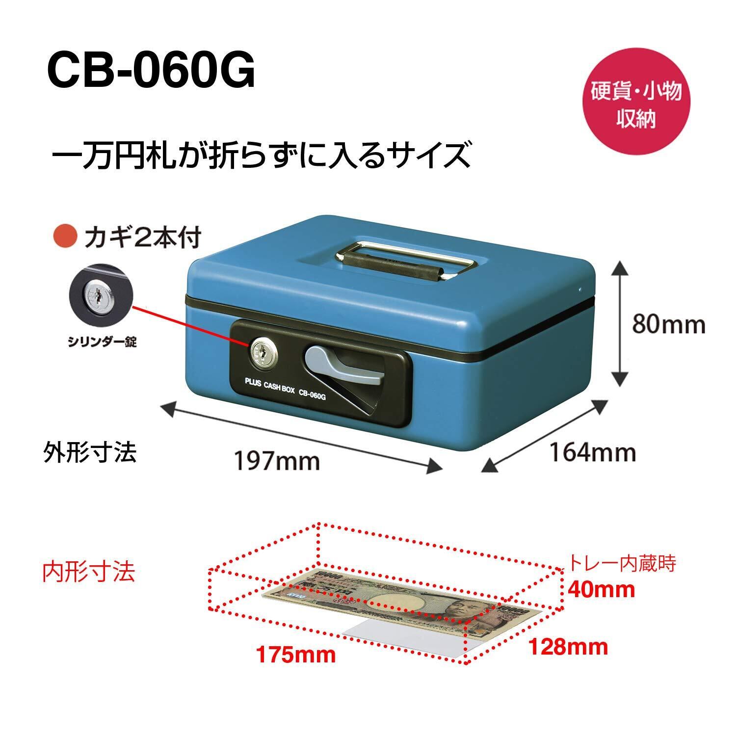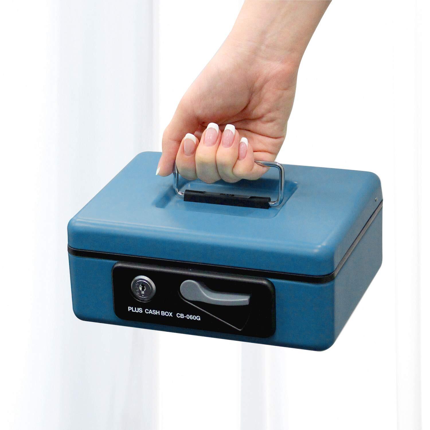 PLUS(プラス) 金庫 手提金庫 小型 W197×D164×80mm ブルー 12-861