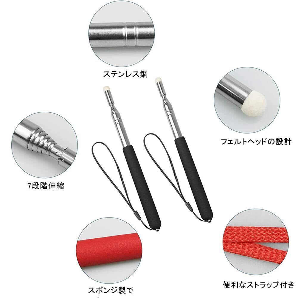 【商品仕様】パッケージ内容:指示棒*2個、掛け紐*2個,最大長さ:約100cm,縮んだ長さ:約21cm,重さ:65g。
