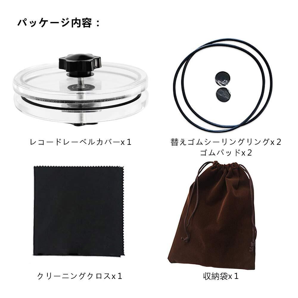 パッケージ内容:レコードレーベルカバーx1;替えゴムシーリングリングx2;ゴムパッドx2;クリーニングクロスx1;収納袋x1