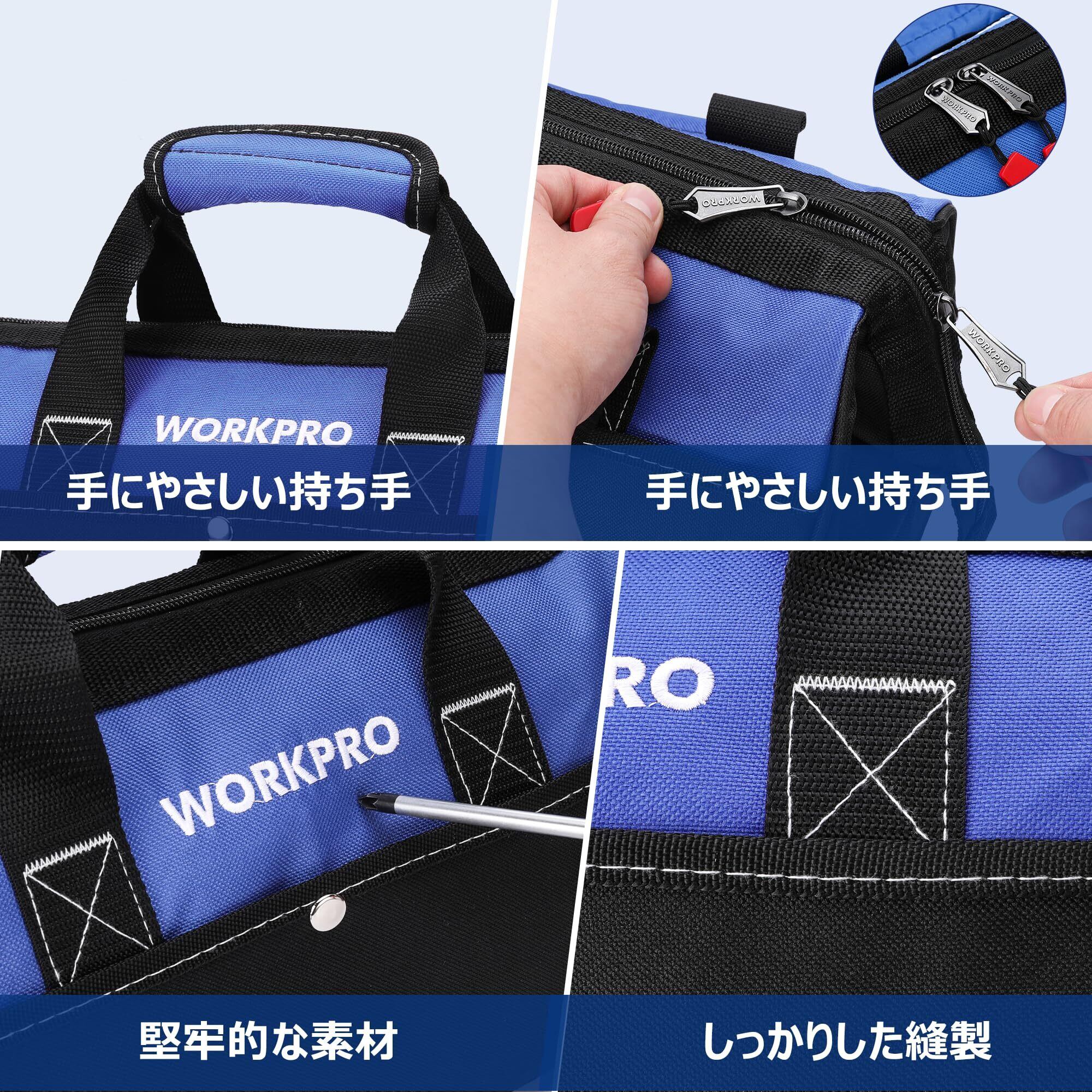 WORKPRO ツールバッグ 工具差し入れ 道具袋 工具バッグ 大口収納 600Dオックスフォード ワイドオープン 幅33cm