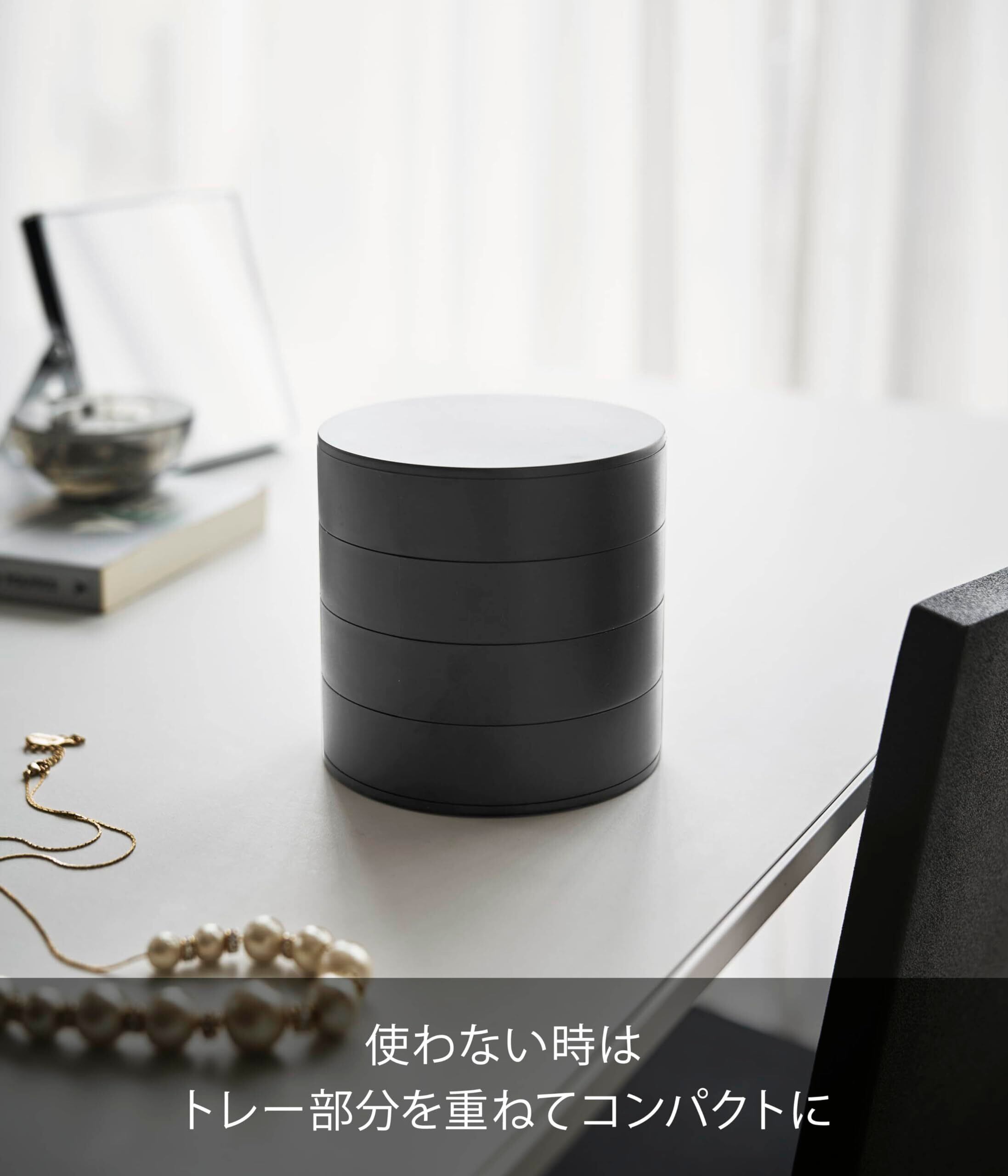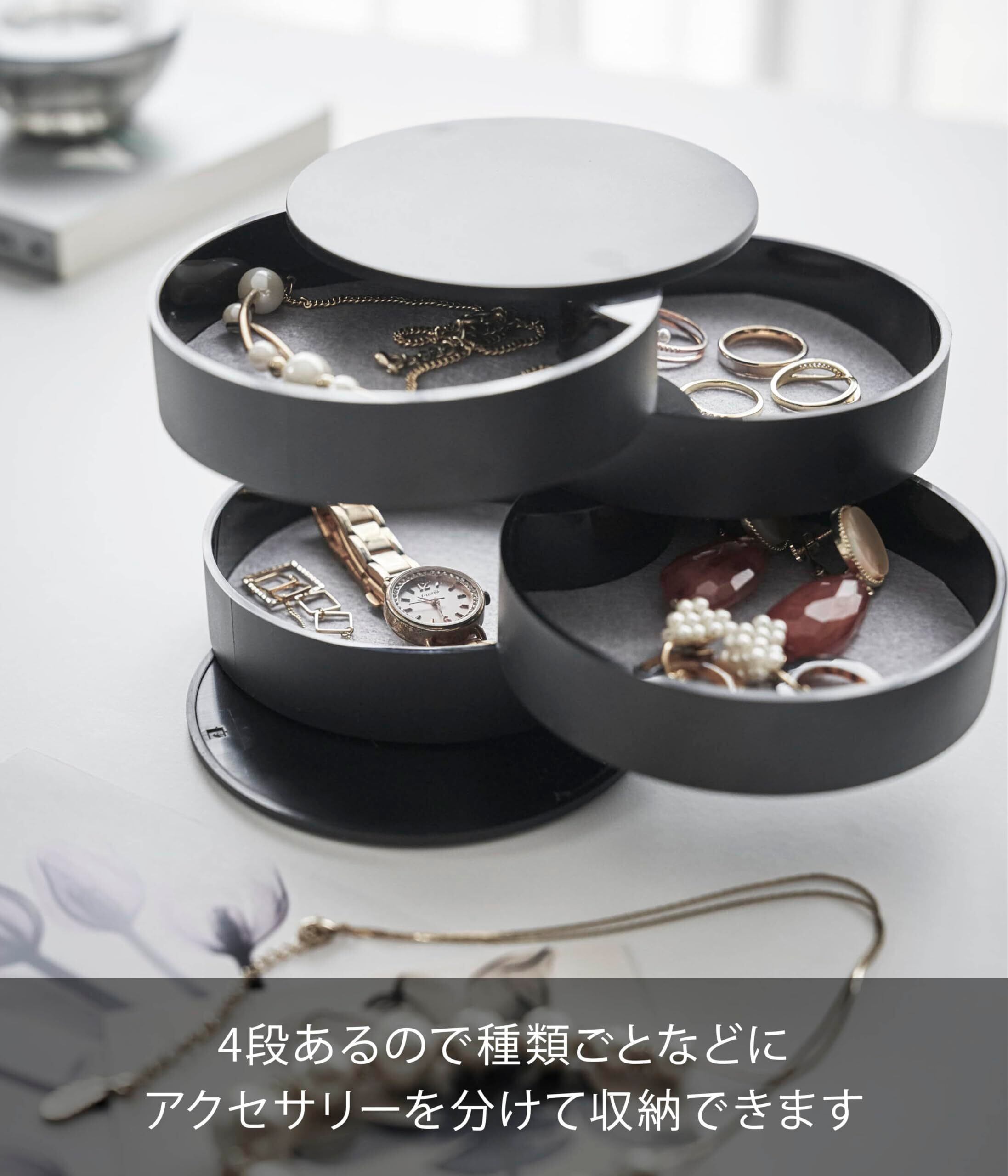 山崎実業 (Yamazaki) アクセサリートレー 4段 ブラック 約W10×D10×H10cm タワー 蓋付き アクセサリーケース アクセサリー収納 4069