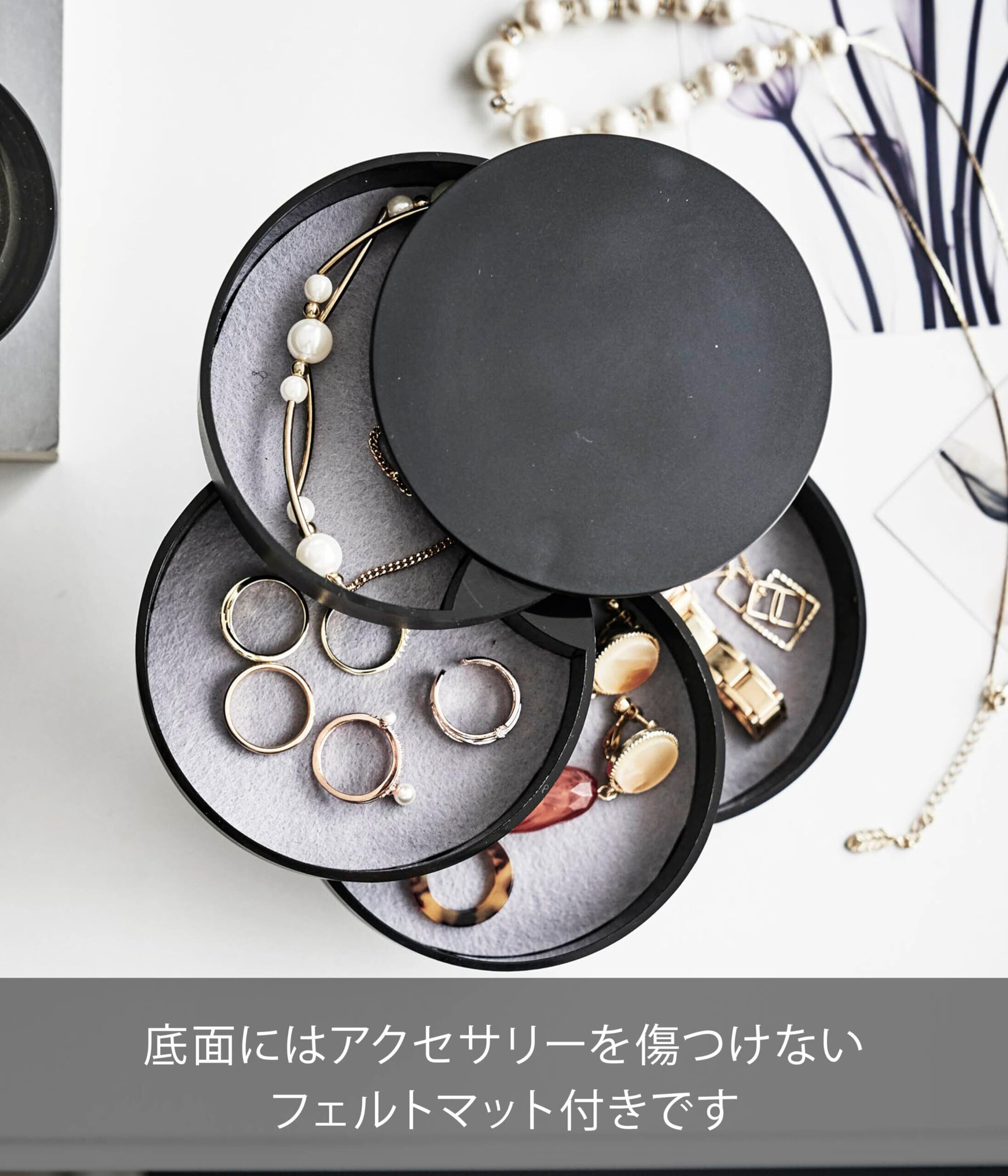 回転式で取り出しやすい美しいフォルムのアクセサリートレー。