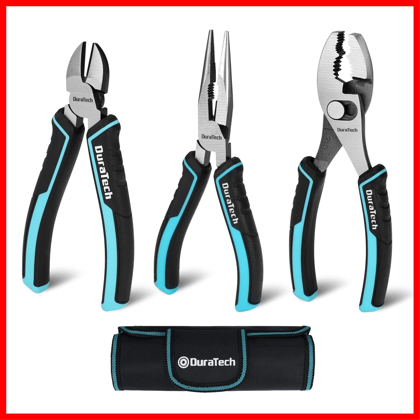 DuraTech プライヤーセット ペンチセット ニッパー ラジオペンチ スリップジョイント 3点セット コンビネーションプライヤー 斜めカッティングプライヤー ニードルノーズプライヤー 収納バッグ付き 宝石 電気技師 家庭修理 作業工具 DIY 手芸用品 手作り アクセサリー作り