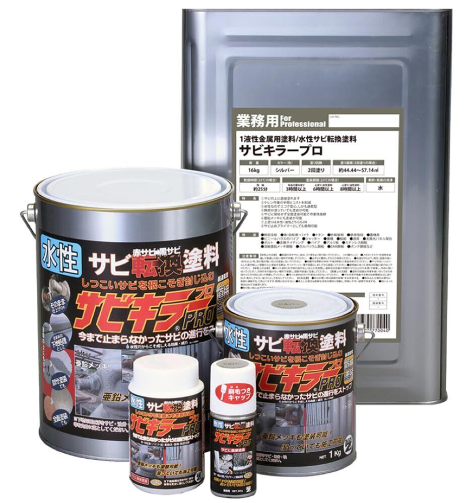 水性サビ転換塗料サビキラープロ(PRO)。サビ落とし不要で、サビに直接塗るだけでサビの進行・再発を強力に防ぎます。