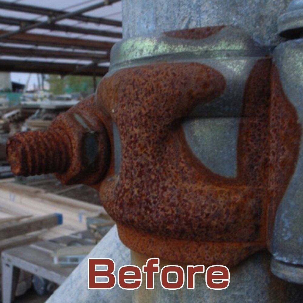 水性系、油性系、各種上塗り塗料が塗装でき、シルバー色で、そのままの仕上げでもOK! 亜鉛メッキにも塗装可能。湿っていても施工可能。サビ部分以外への全面塗装が可能です。