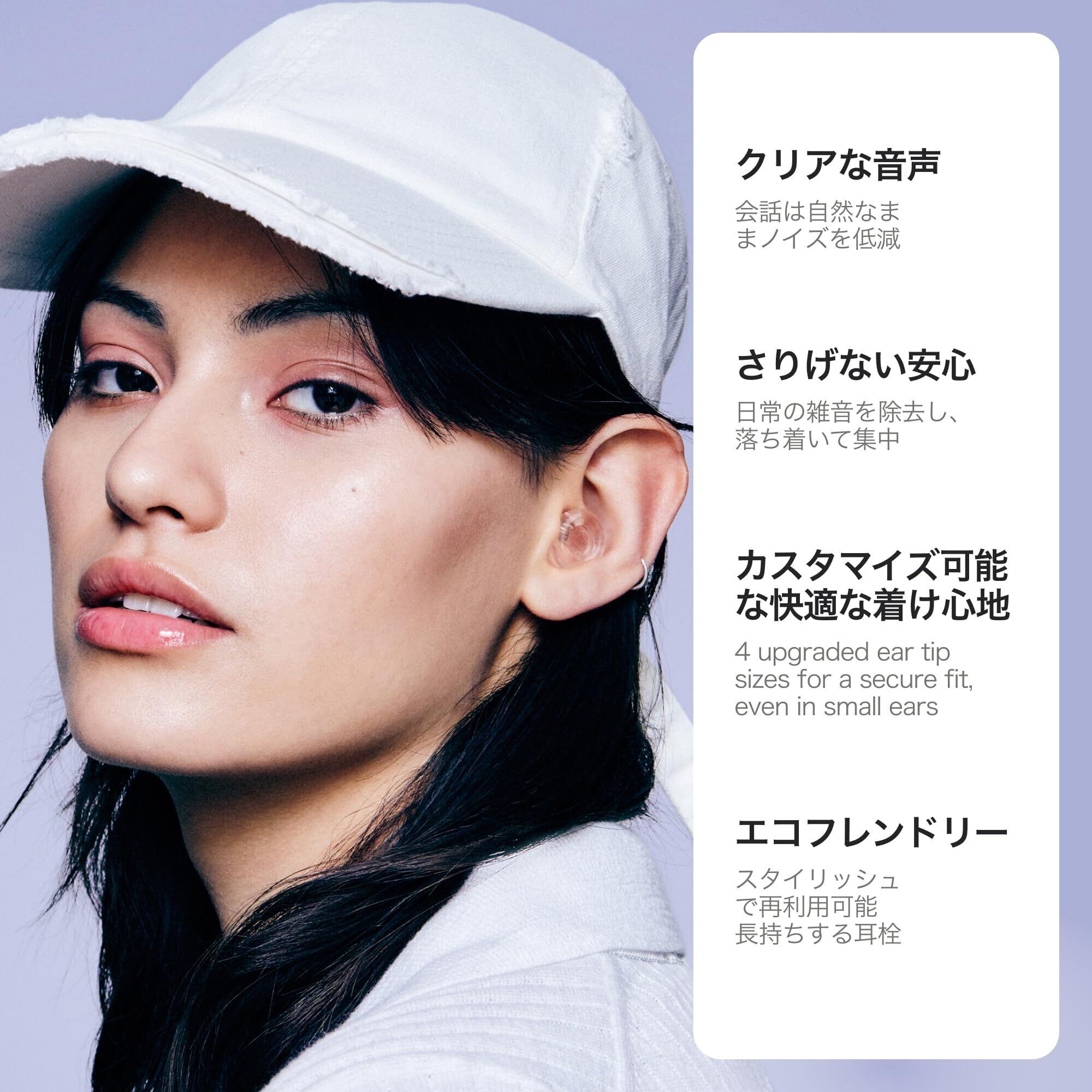 使いやすくカスタマイズ可能な快適な着け心地 - 改良された4種類のサイズのイヤーチップでフィット感を調整でき、小さな耳にも完璧にフィットします。Loop耳栓は再利用可能。しかもお手入れが簡単で長持ち。差し込んでひねって固定して、自分のボリュームでお出かけください。