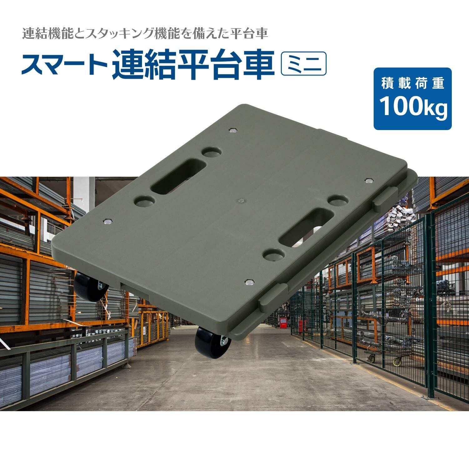 [山善] ミニ平台車 27.5×41cm 耐荷重100kg 縦横連結可能 スタッキング機能 キャリーカート ドーリー YRM-N50(OD) オリーブ