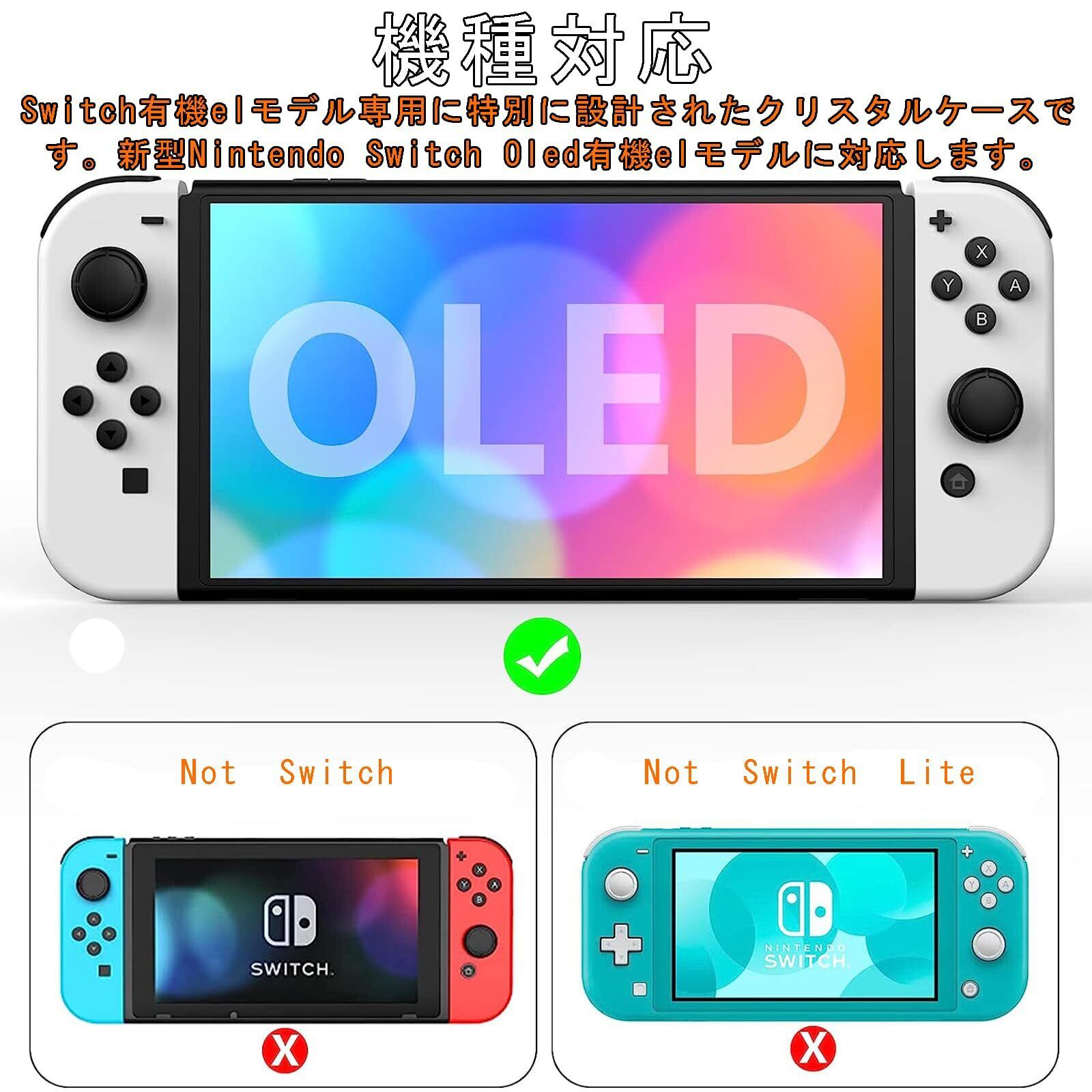 【機種対応】Switch有機elモデル専用に特別に設計されたクリスタルケースです。新型Nintendo Switch Oled有機elモデルに対応します。このケースは丈夫で軽量で、Switch OLEDを傷から守ります。SWITCH OLEDケースの背面は、保護機能を備えながらブラケットで開いて自由に調整できます。