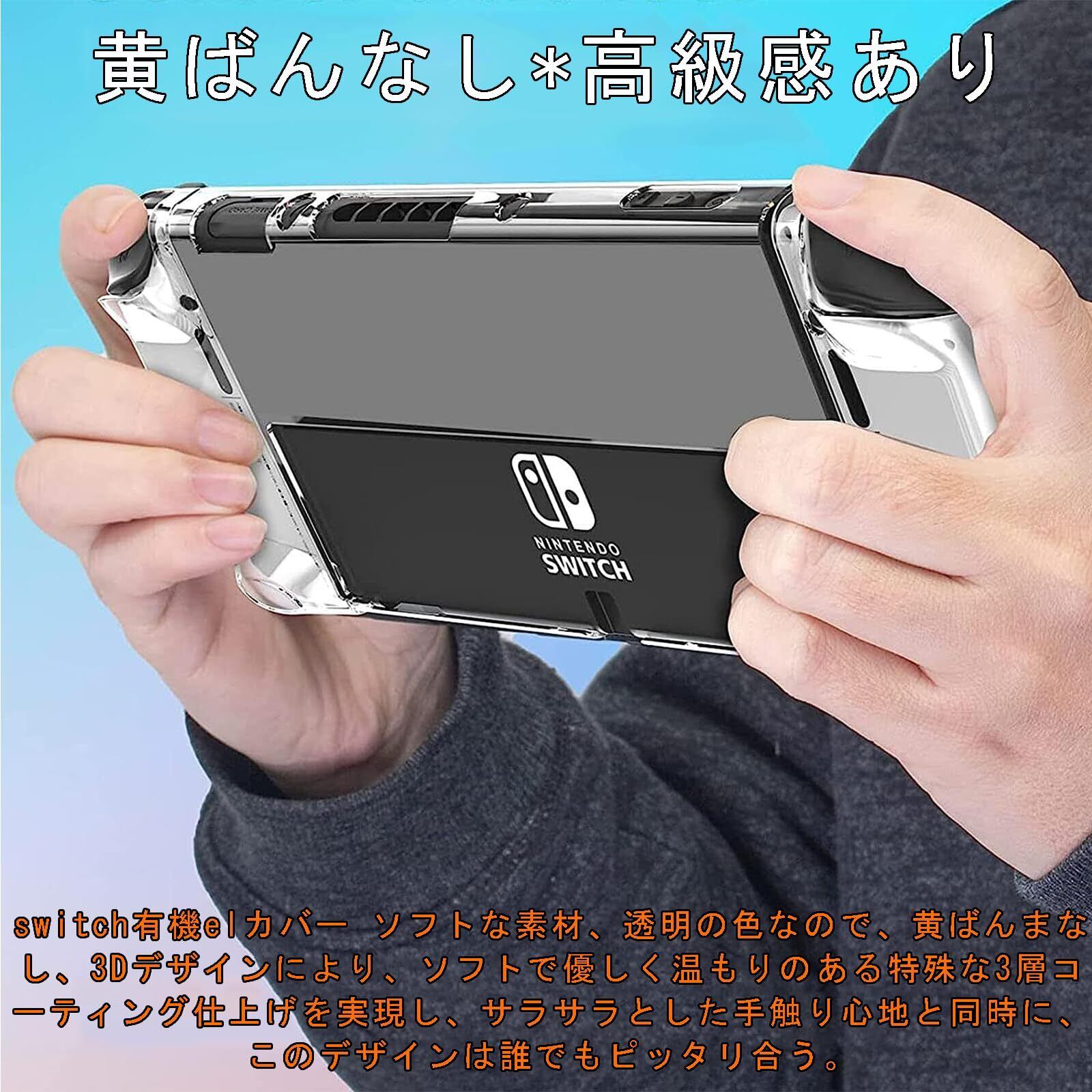 【黄ばんなし*高級感あり】switch有機elカバー ソフトな素材、透明の色なので、黄ばんまなし、3Dデザインにより、ソフトで優しく温もりのある特殊な3層コーティング仕上げを実現し、サラサラとした手触り心地と同時に、このデザインは誰でもピッタリ合う。透明、シンプル、Switch Oledの本来の美しさを誇示します。