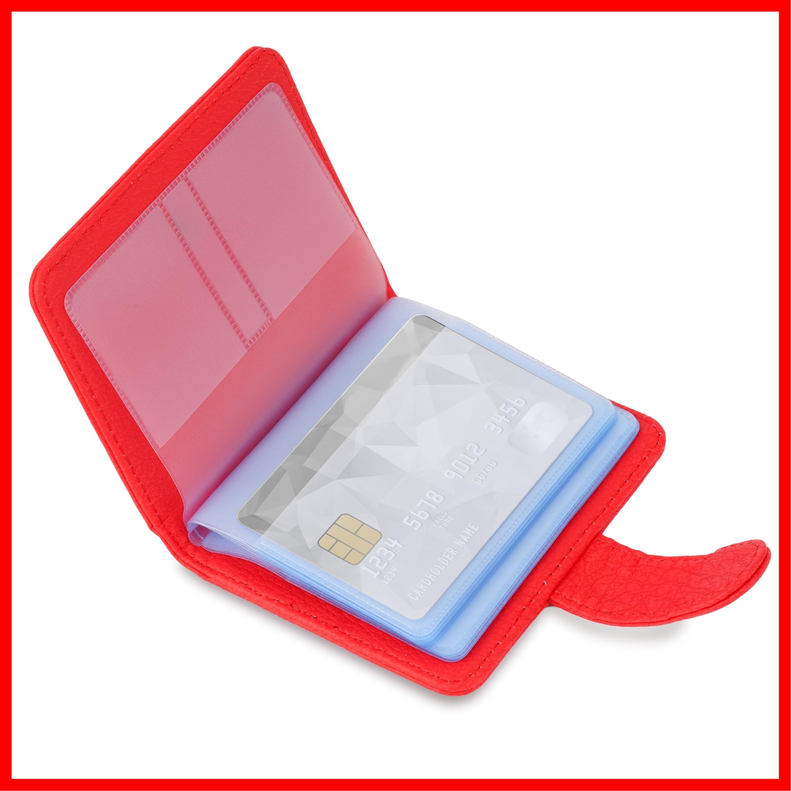 Wisdompro カードケース 磁気 スキミング防止 名刺ファイル カード入れ クレジットカードケース 保険証/免許証/キャッシュカードに対応 PUレザー 二つ折り 縦型 20枚収納 レッド | hananoki