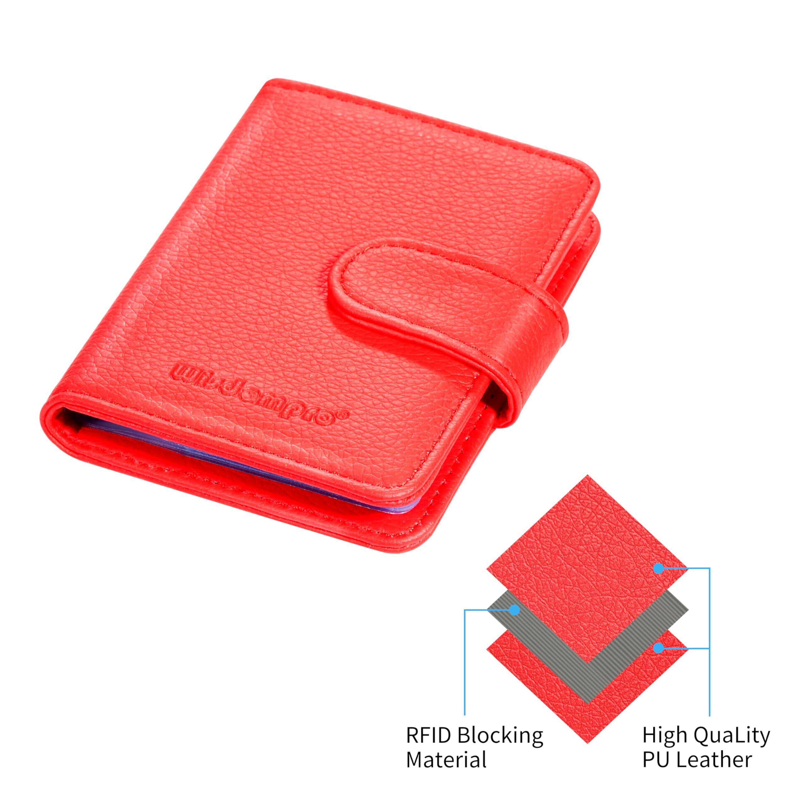 Wisdompro カードケース 磁気 スキミング防止 名刺ファイル カード入れ クレジットカードケース 保険証/免許証/キャッシュカードに対応 PUレザー 二つ折り 縦型 20枚収納 レッド