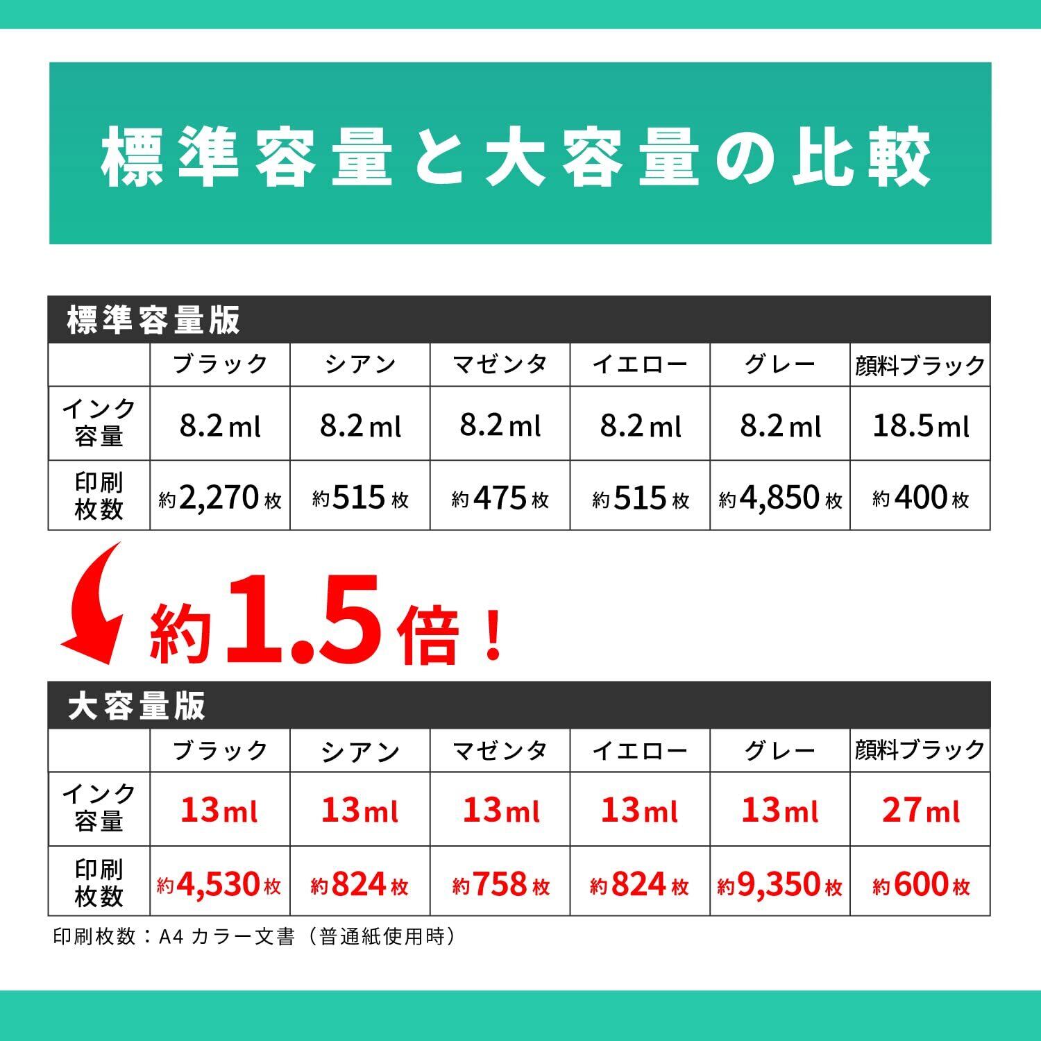 [セット内容] BCI-330XLPGBK(顔料ブラック) 1本 / BCI-331XLBK (ブラック) 1本 / BCI-331XLC(シアン) 1本 / BCI-331XLM(マゼンタ) 1本 / BCI-331XLY(イエロー) 1本 / BCI-331XLGY(グレー) 1本, [容量] 大容量, [残量検知] 対応
