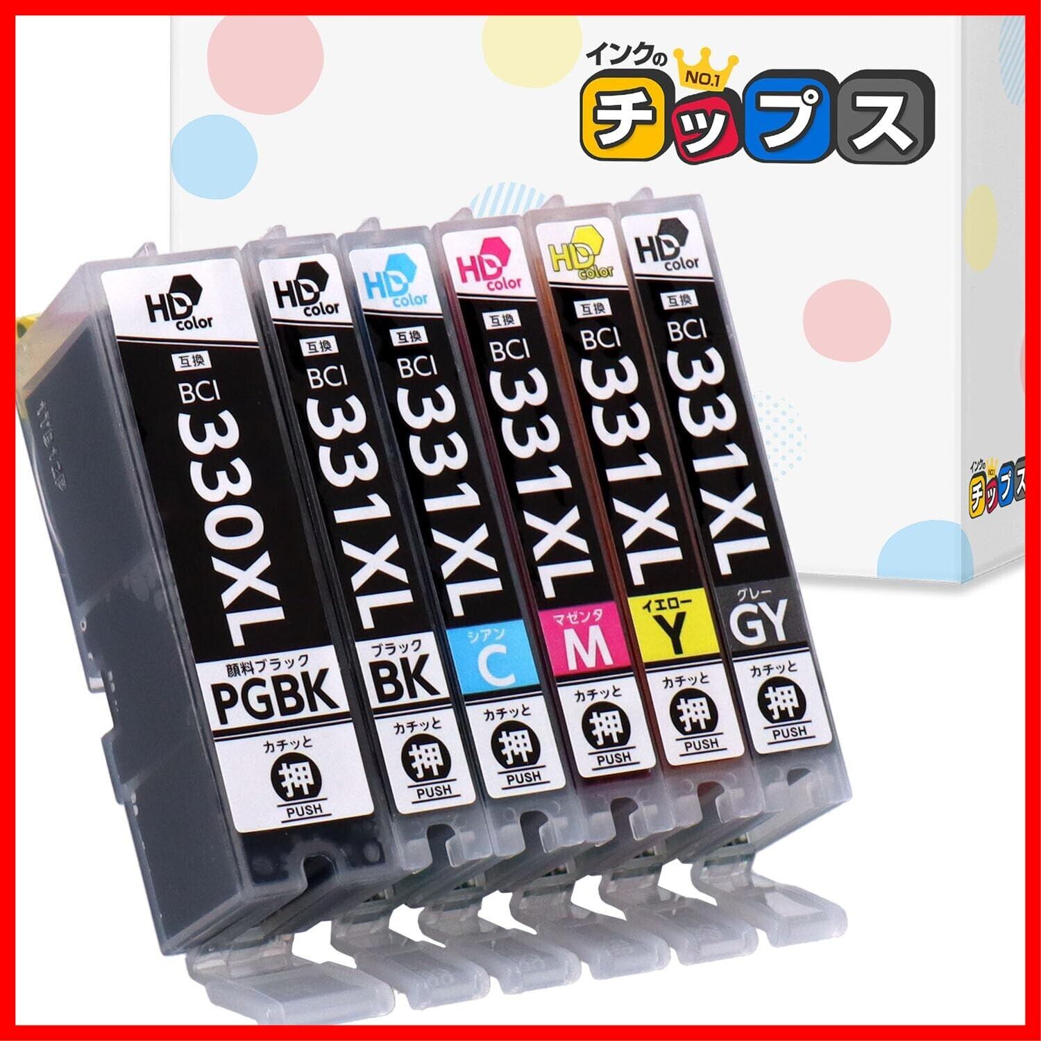 【インクのチップス】 BCI-331 BCI-330 6色マルチパック 大容量 キヤノン用 互換インク <残量表示対応/日本人技術者監修> 対応機種 : PIXUS TS8830 TS8730 TS8630 TS8530 BCI-330XLPGBK BCI-331XLBK C M Y GY 認証 : ISO14001 ISO9001 RoHS など