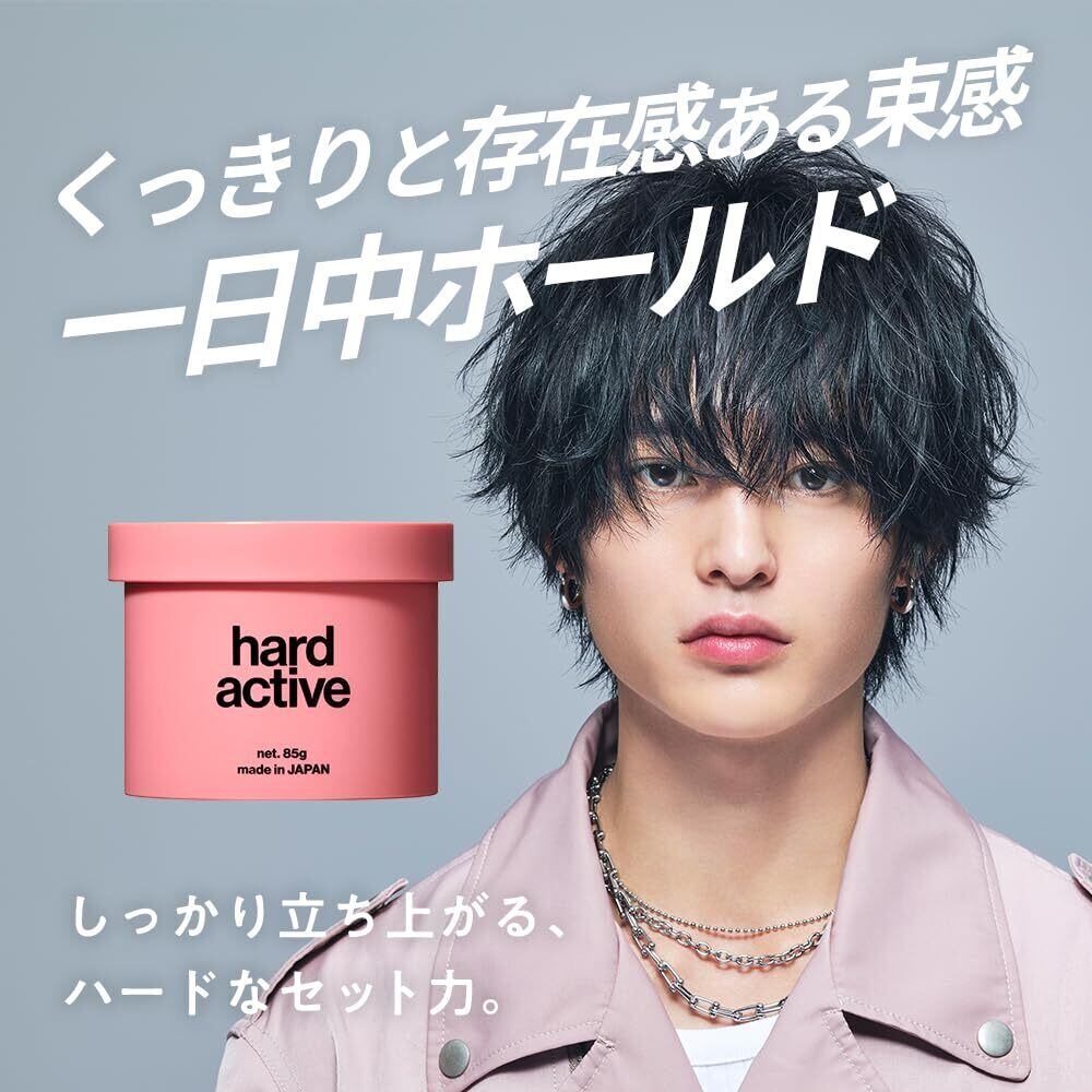 【ハードアクティブ】軟毛で立ち上がりが潰れやすい人でも、シャープで動きのある束感が一日キープできます。スーパーハードなセット力でしっかり立ち上がり、大胆かつ、くっきりとした毛束感が作れます。