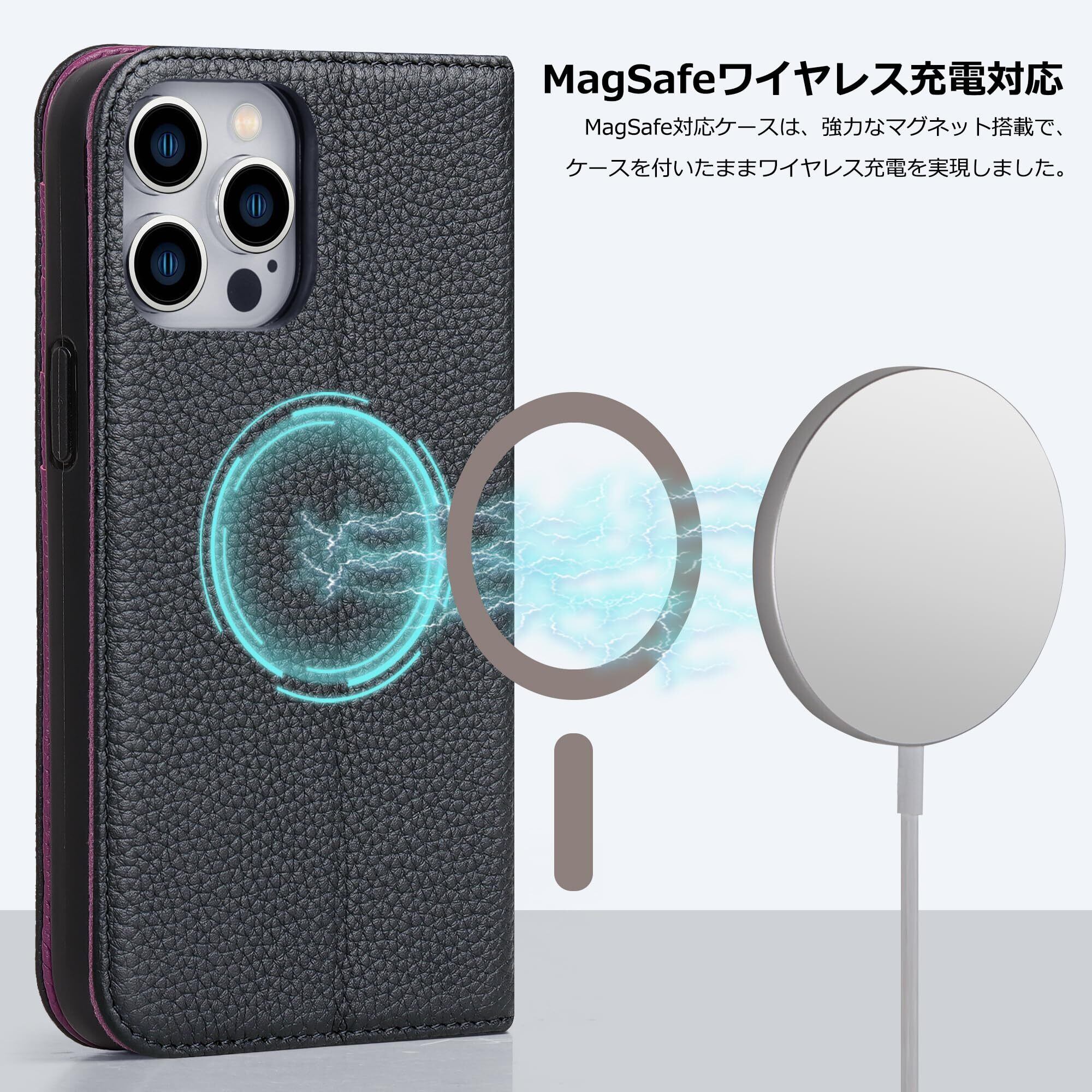 VISOUL iPhone15 Pro ケース 手帳型 本革 MagSafe対応 アイフォン15 プロ ケース レザー スマホケース 財布型 カード収納 携帯ケース 全面保護 柔軟なTPU素材 マグネット式 スタンド機能付き 6.1インチ アイホン 15 Pro ブラック パープル | hananoki