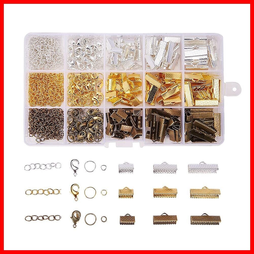 PandaHall アクセサリーパーツ 金具セット 約420入り 紐止め 留め具 エンドパーツ ワニ口 カニカン 丸カン マルカン ジャンプリング リボンエンド 基礎パーツ 金具セット 金具キット パーツ ジュエリー DIY用 混合色