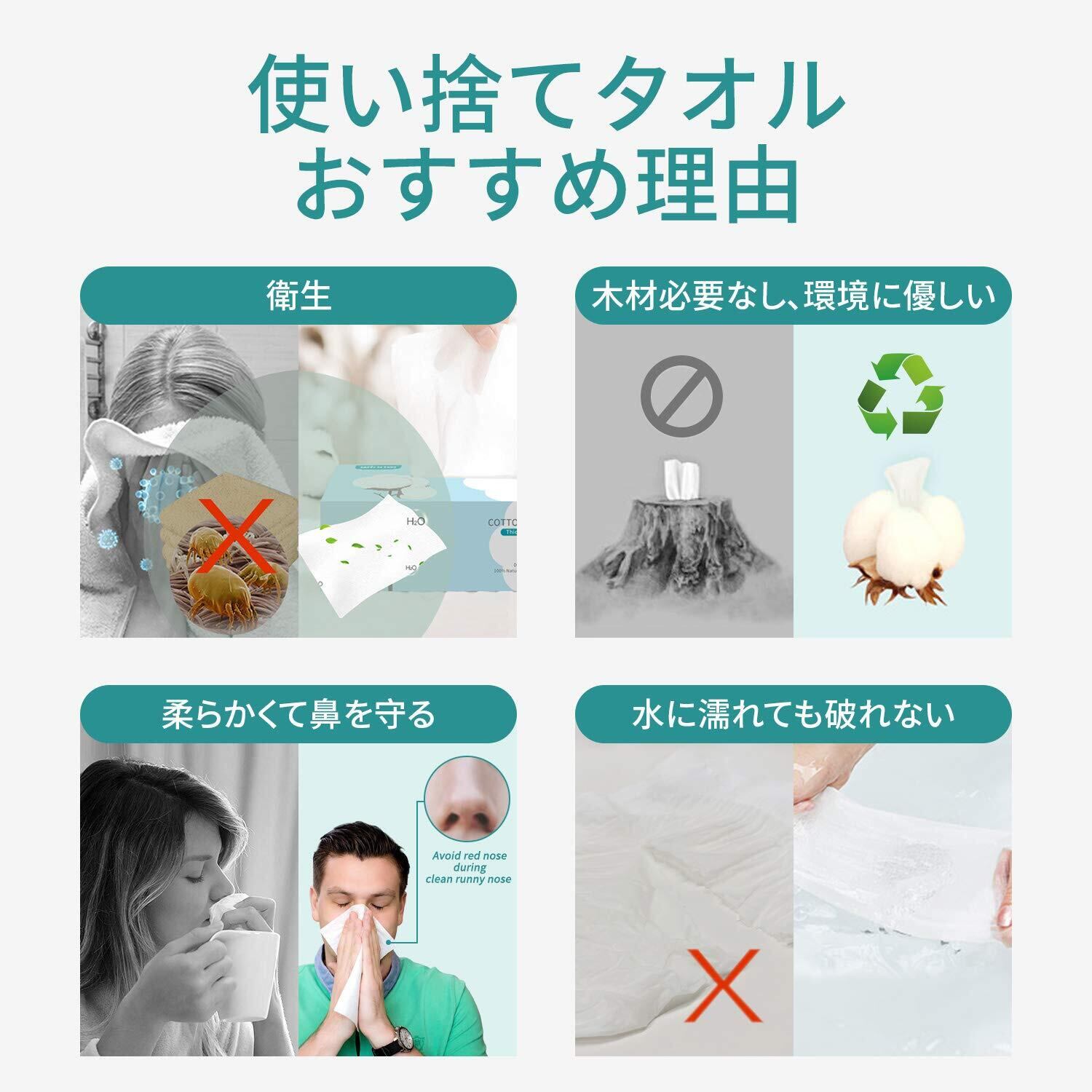 商品特長 100%コットン、天然成分、OEKO-TEX認証持ち、臭いなし;使い捨て、刺激性なし