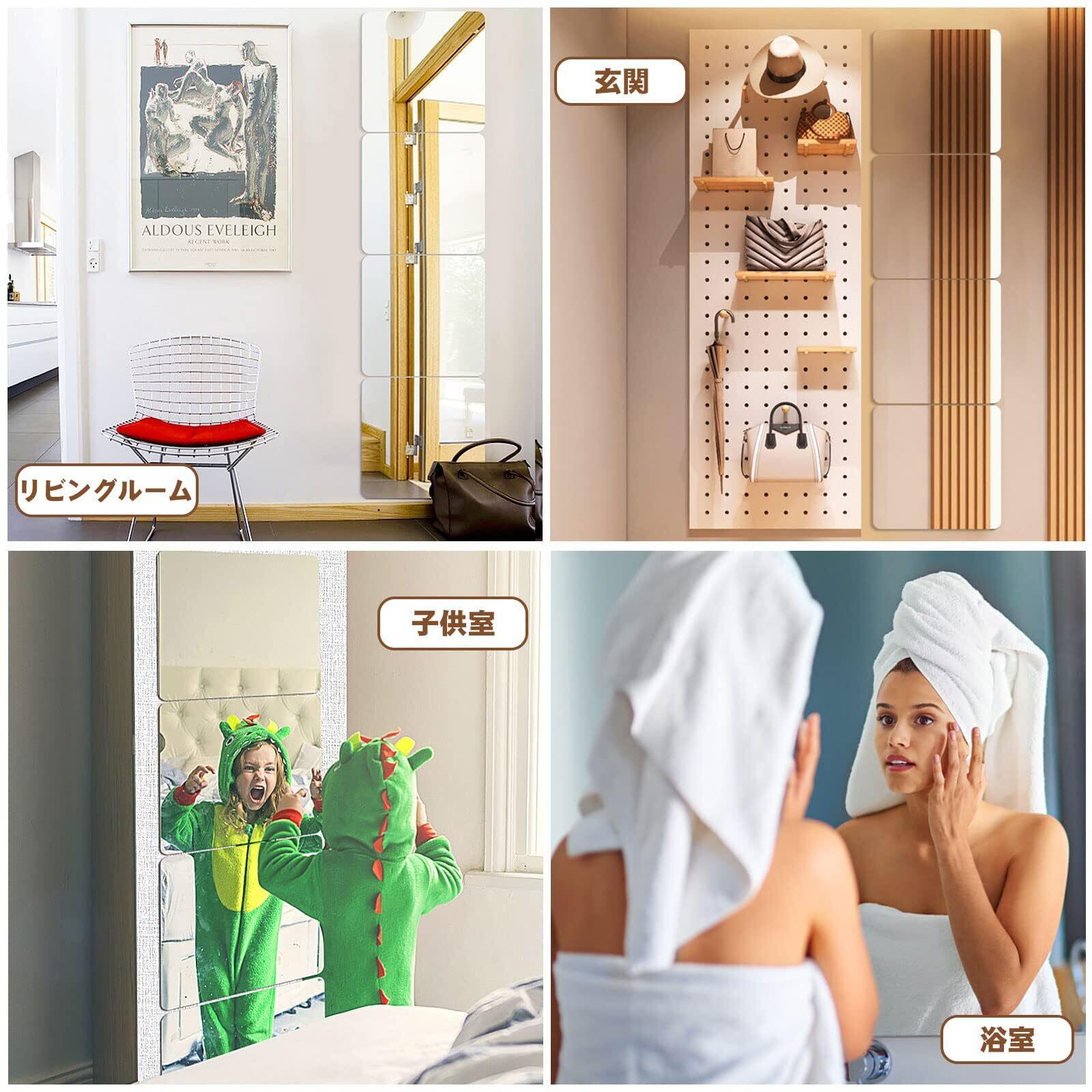 AUGSHYO 貼る鏡 割れない鏡 全身 姿見 鏡 壁掛け 貼る 全身鏡 壁掛け 全身ミラー 30cm*30cm 6枚セット 割れない 鏡 貼り付け 壁に貼る鏡 壁掛け鏡 飛散防止 HD鏡面 角丸加工 軽量