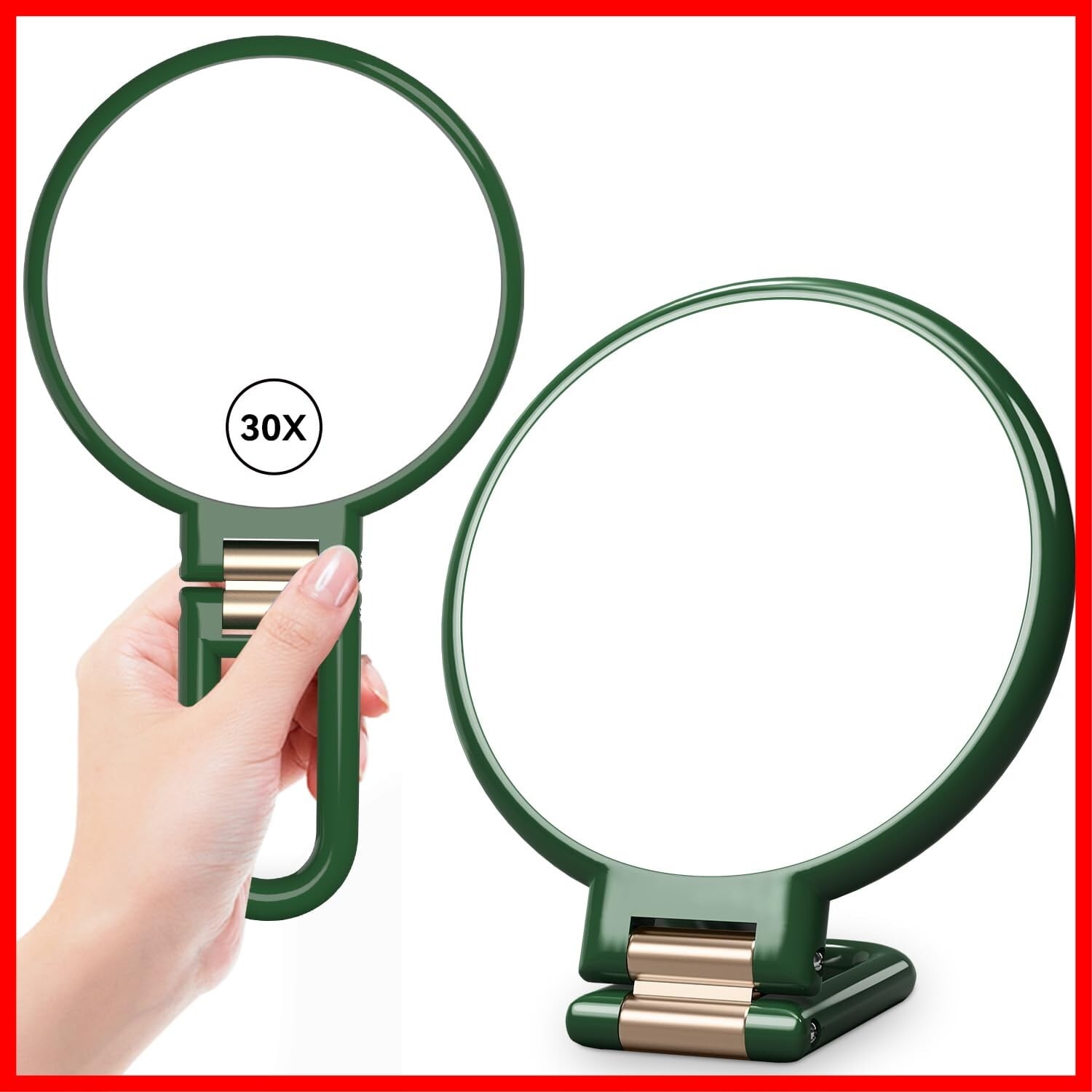 Auxmir 手鏡 化粧鏡 拡大鏡 30倍と等倍 折りたたみ式 ハンド&スタンドミラー 吊り下げ式 卓上/吊り下げ/手持ち可能 持ち運び便利 鏡 卓上 コンパクト 軽量 旅行用 ハンドル付き両面鏡 円形 緑色 プレゼント