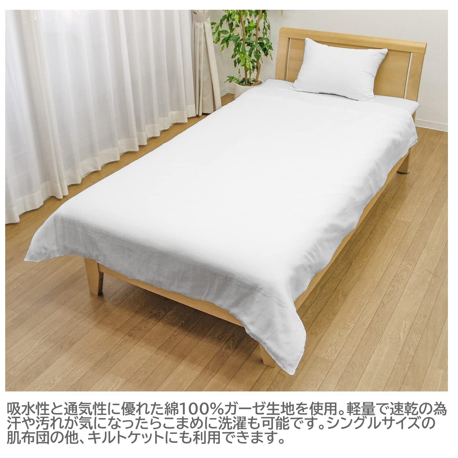 綿100%、やさしい肌ざわりのガーゼ素材の肌布団カバー。