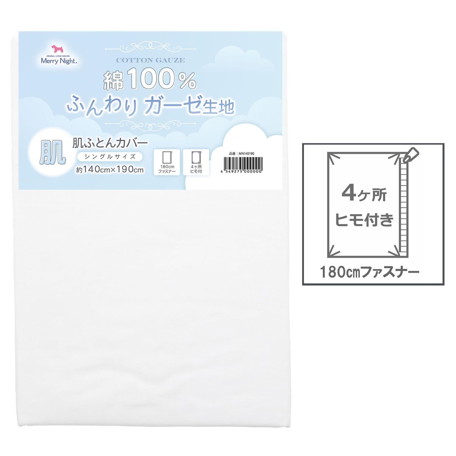 メリーナイト 肌布団カバー ガーゼ ホワイト シングル 約140×190cm 肌布団 キルトケット 綿100% 軽量 通気性 ふんわりやさしい肌触り 洗える 夏用寝具 MN140190-06