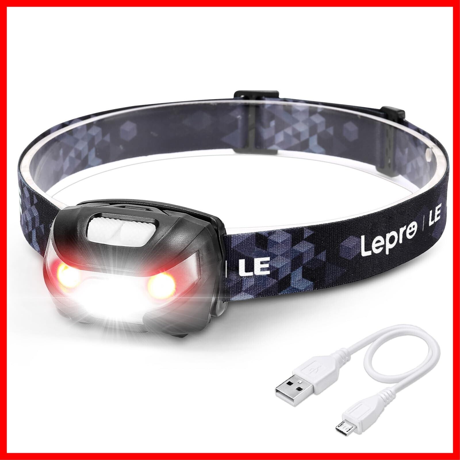 Lepro ヘッドライト 充電式 ledヘッドライト 釣り ヘッドランプ 登山 USB充電 白&赤 ledライト 高輝度【明るさ150ルーメン/5つ点灯モード/3時間満充電/実用点灯30時間】 防水 照射角度調整可 軽量 キャンプ 散歩 アウトドア 災害 停電用
