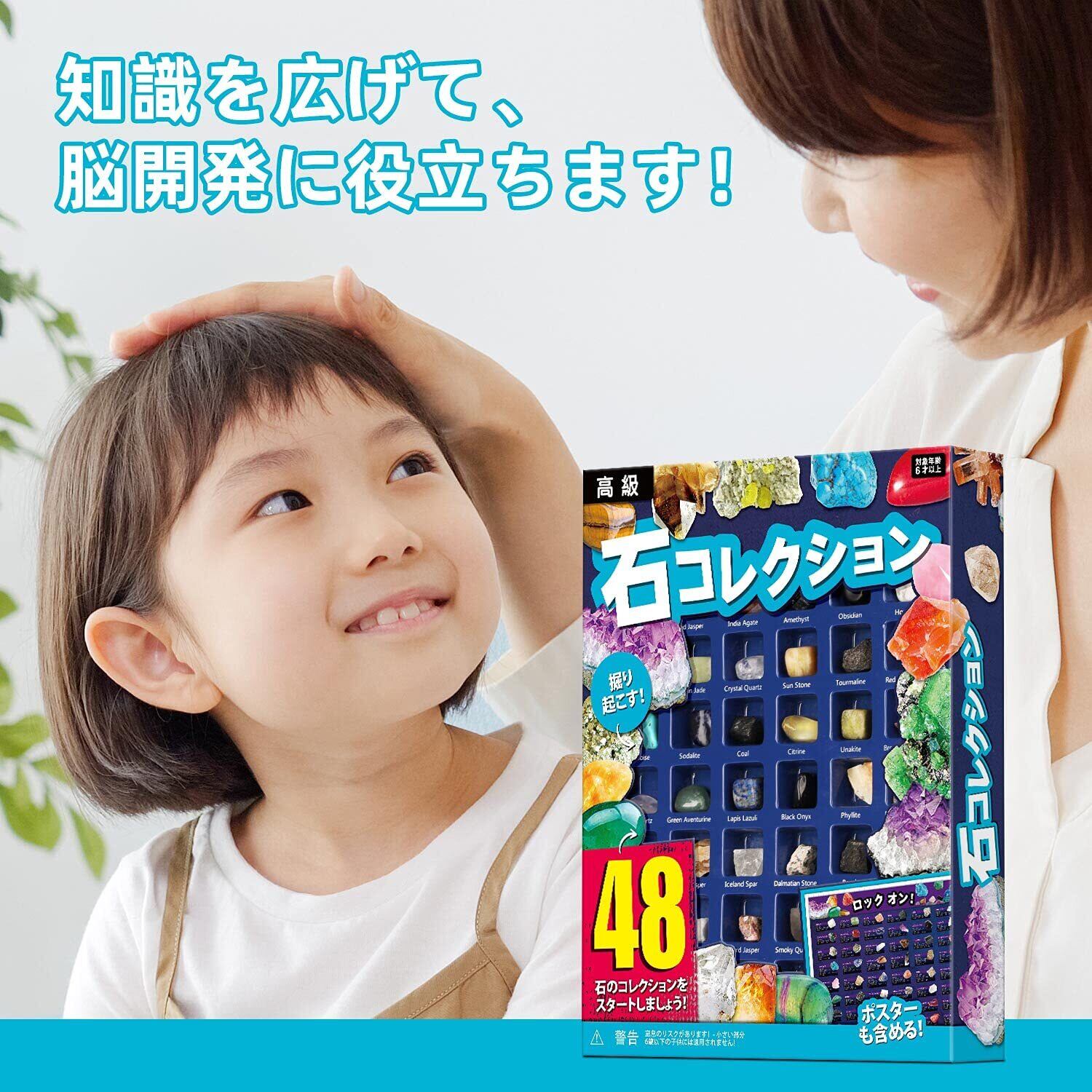 完備なコレクションセット:中には48種類の異なる岩石鉱物、1枚の学習ポスターがあります。ロックの種類が多いだけではなく、それらを知るための資料もありますよ
