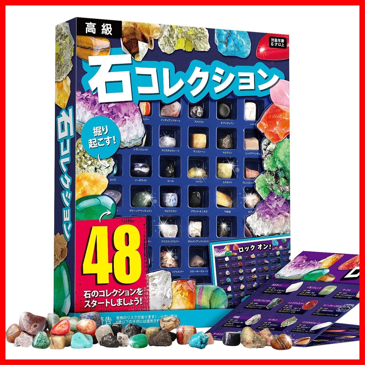 XXTOYS 鉱石標本48種 天然鉱石 宝石おもちゃ 岩石標本 クリスマス プレゼント ロック&ミネラル コレクション ジェムストーン 地質科学キット 48個セット アメジスト 子供 ギフト(日本語版) | hananoki