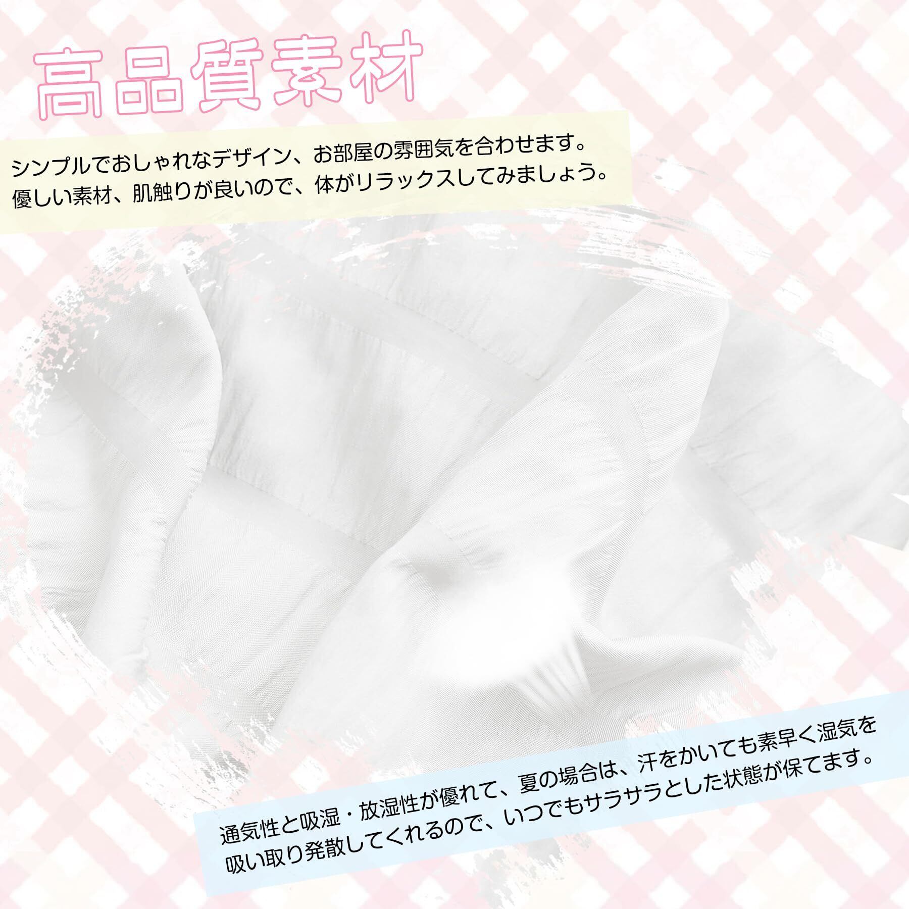 【通気性が良い&オールシーズン使用】 優れた通気性と吸放湿性優れて、夏の場合は、汗をかいても素早く湿気を吸い取って、発散してくれるのでいつでもサラサラとした肌触りです。冬の時、カバーの繊維と繊維の間に暖かな空気をためてくれるので、布団の中を暖かく保ったりするという役割もあります。汗をかいて寝苦しかったり、保温力が足りず寒かったりしてはぐっすり眠ることができません。オールシーズン快適な寝心地が楽しめます。