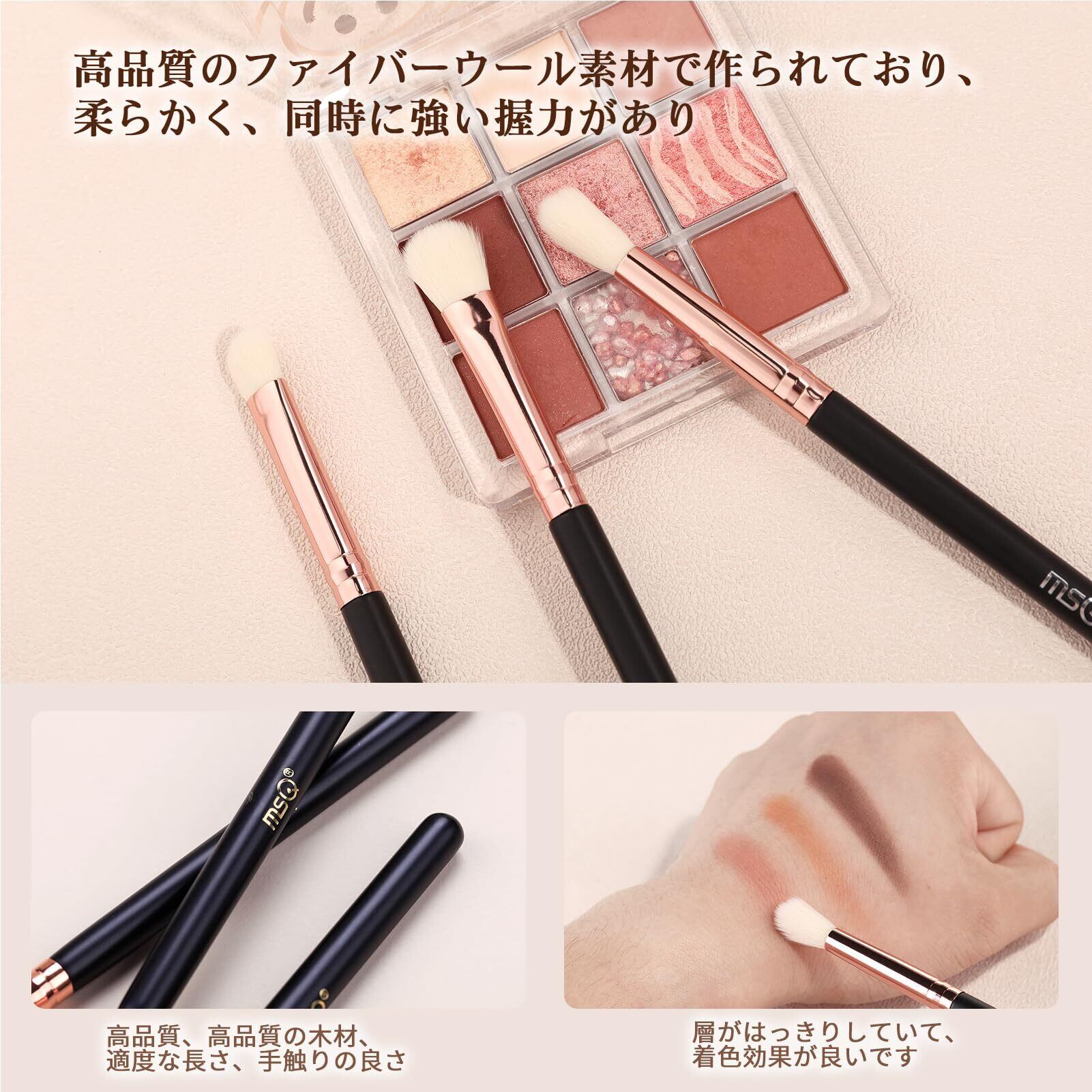 MSQ メイクブラシ6本 アイシャドウ ブラシセット 革新的なデザイン 化粧 筆 高級繊維毛 超柔らかい 日常の化粧 携帯便利 敏感肌適用(ローズゴールド)