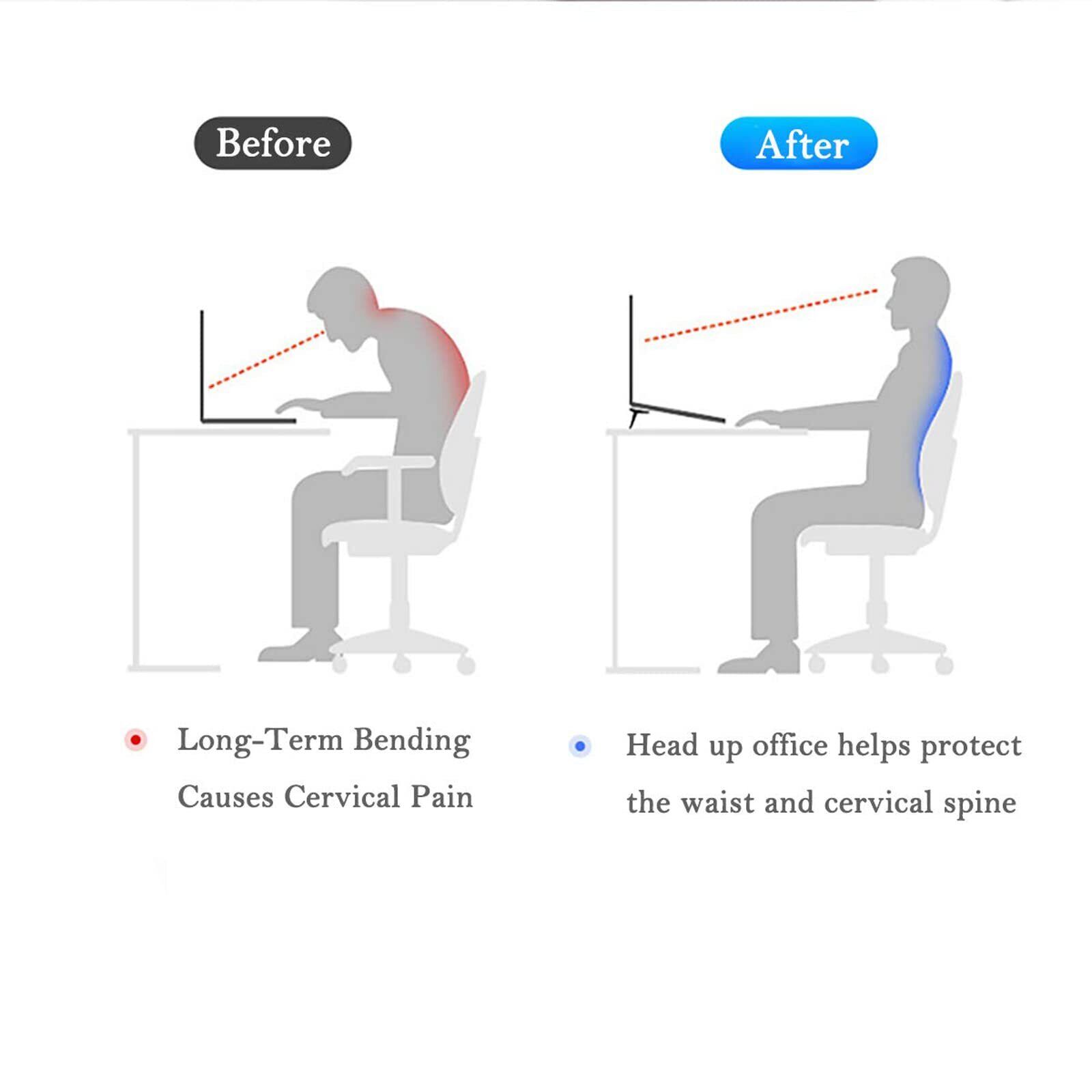 【人間工学&健康を犠牲にすることなく】ノートパソコンは非常に機能的ですが、画面が非常に低くなる傾向があります。 これは、画面をよく見るためには、目、首、さらには背骨に負担をかけなければならないことを意味します。 当社のスタンドは、ノートパソコンの画面を1インチに上げ、前傾角度15°で人間工学的に機能し、デスクでの作業中に姿勢を矯正し、より快適に体験できます。
