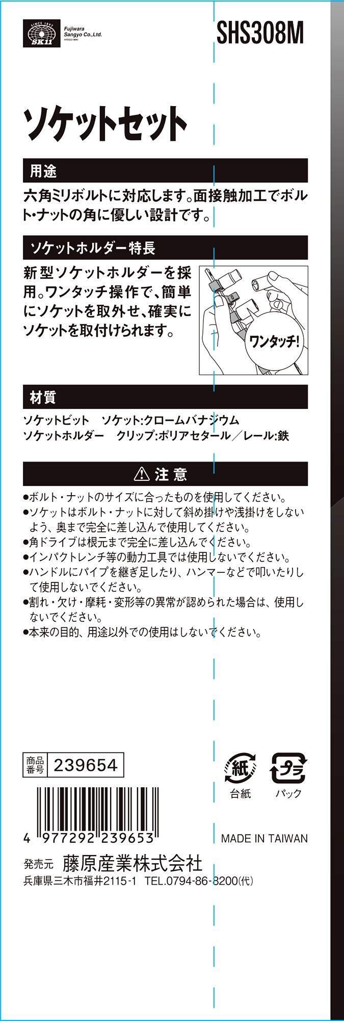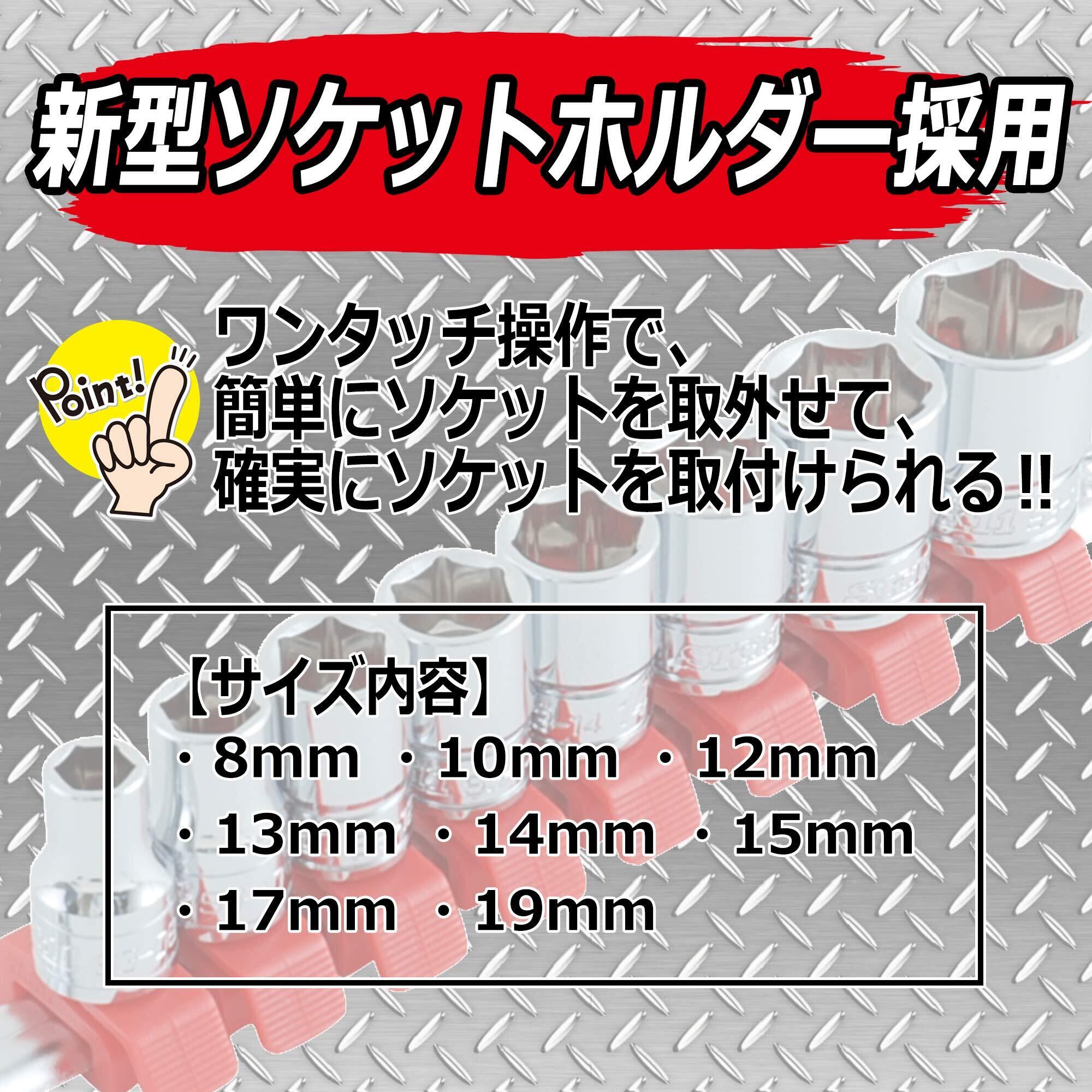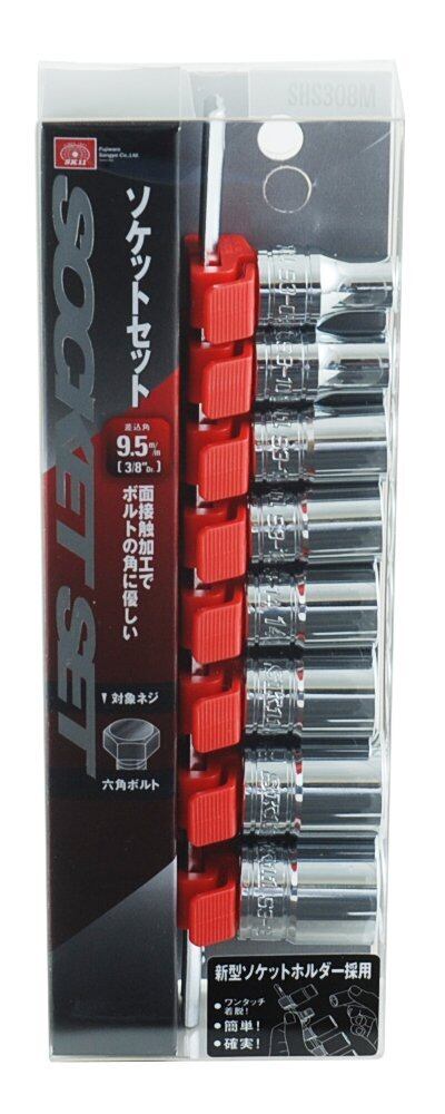 SK11(エスケー11) ソケットセット 6角 SHS308M クリップ色:赤 差込角:9.5mm 8点 1セット