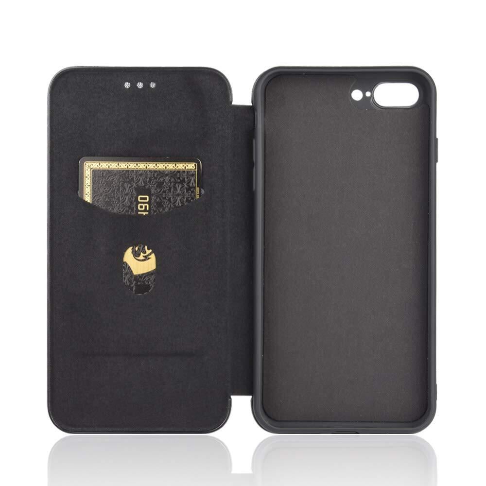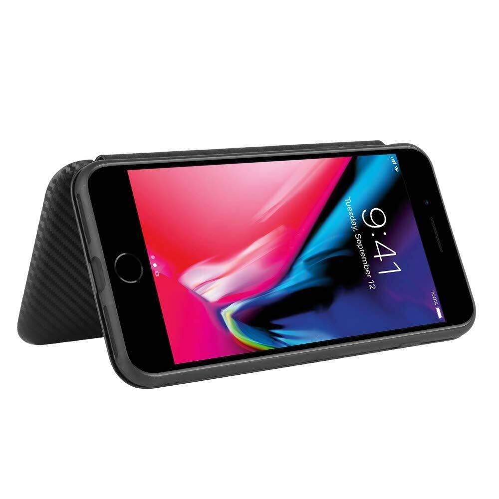 iPhone SE ケース 第3世代 手帳型 薄型 炭素繊維調 【Dingxin】iphone se3 財布型 マグネット式 カード収納あり ストラップホール ストラップ付 iPhone 8 / iPhone 7 / iPhone se2 対応 ケース 全面保護 耐衝撃 (ブラック)