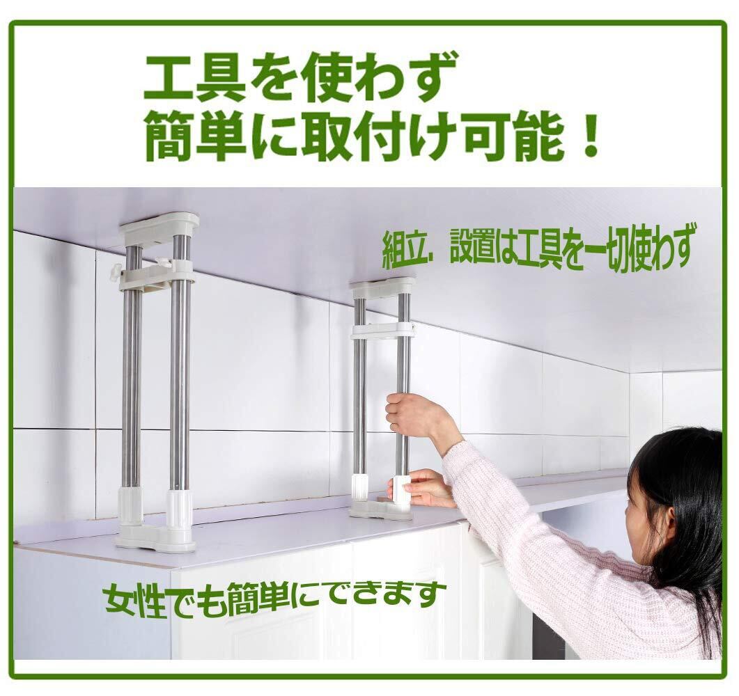 ダブルH型構造とジャッキ方式で、家具と天井をしっかりと固定します。5㎝ブロックがあり、様々な幅範囲に対応できます。