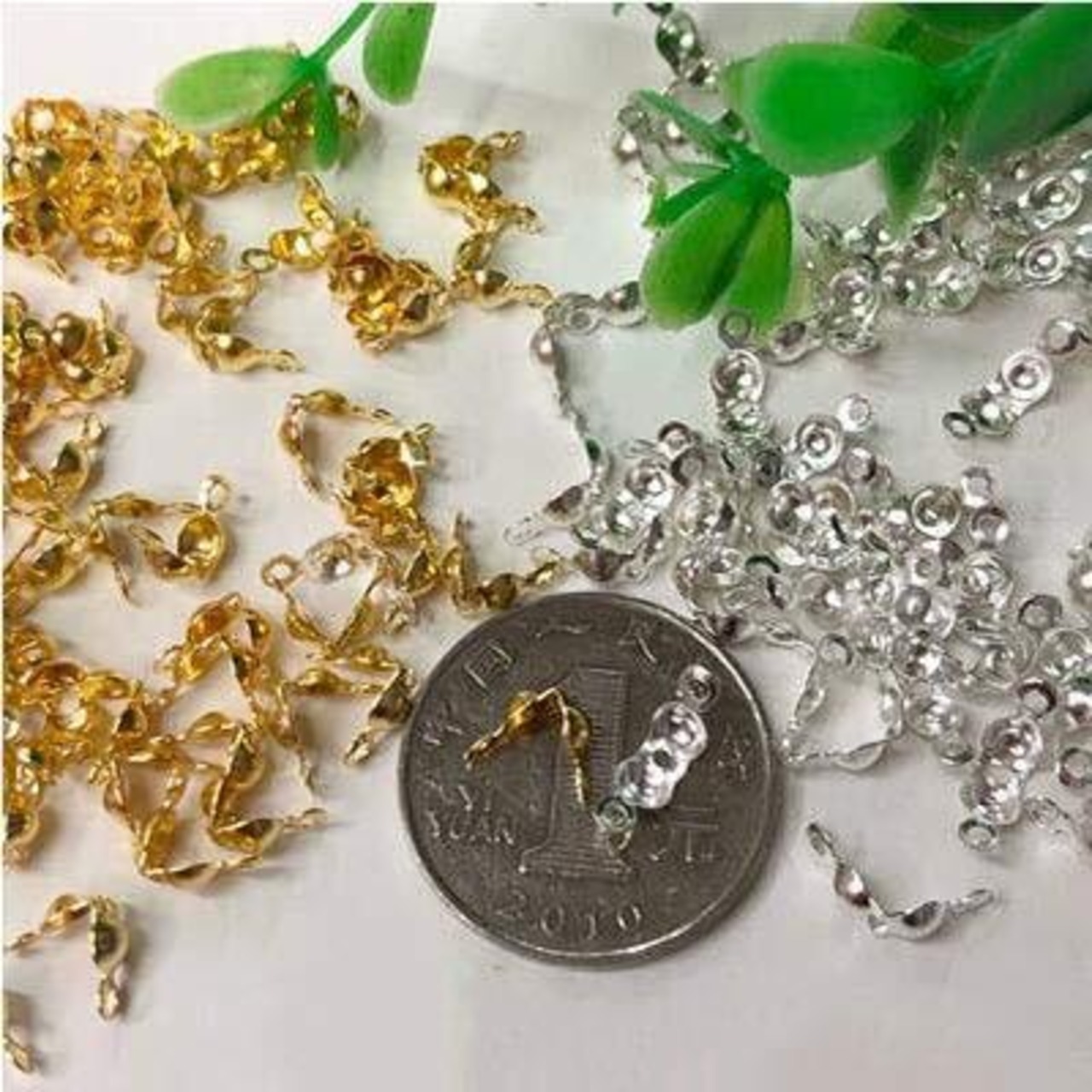 使用場合:テグス・ワイヤー・糸の端処理はコレでOK!カン付きなので、他のパーツとの接続にも大活躍◎お好みの金具を取り付けてね。ジュエリー修復、手作りアクセサリー、ハンドメイド作品への飾り付け、DIYなど様々な用途にお使いいただけます。