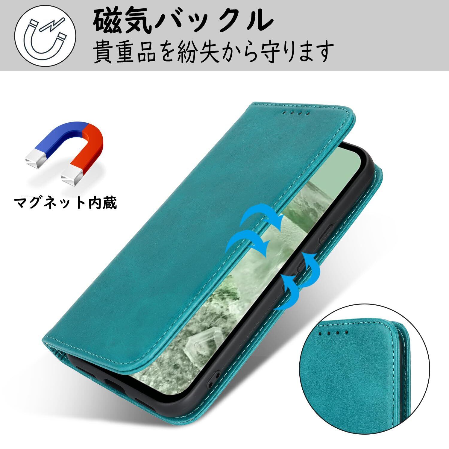 【Hamany】 google pixel 8a ケース 手帳型 ピクセル8a ケース カード収納 耐衝撃 pixel8a ケース 手帳型 耐久性 耐摩擦 スタンド機能 googleピクセル8a ケース マグネット式 レザー カバー -ファッションスカイブルー