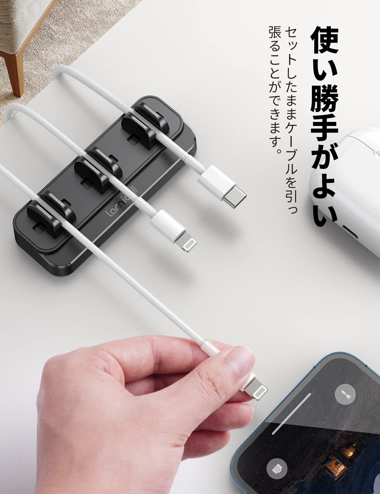 【収納対策】USBケーブルや充電ケーブルなどの紛失や落下を防ぎますので、ケーブルを使用しない時でもデスクの上にケーブルが落ちません。乱れたデータケーブル、ヘットフォンケーブル、電源コードに別れを告げます。机上にケーブルのごちゃごちゃと困っている方にお勧めします。