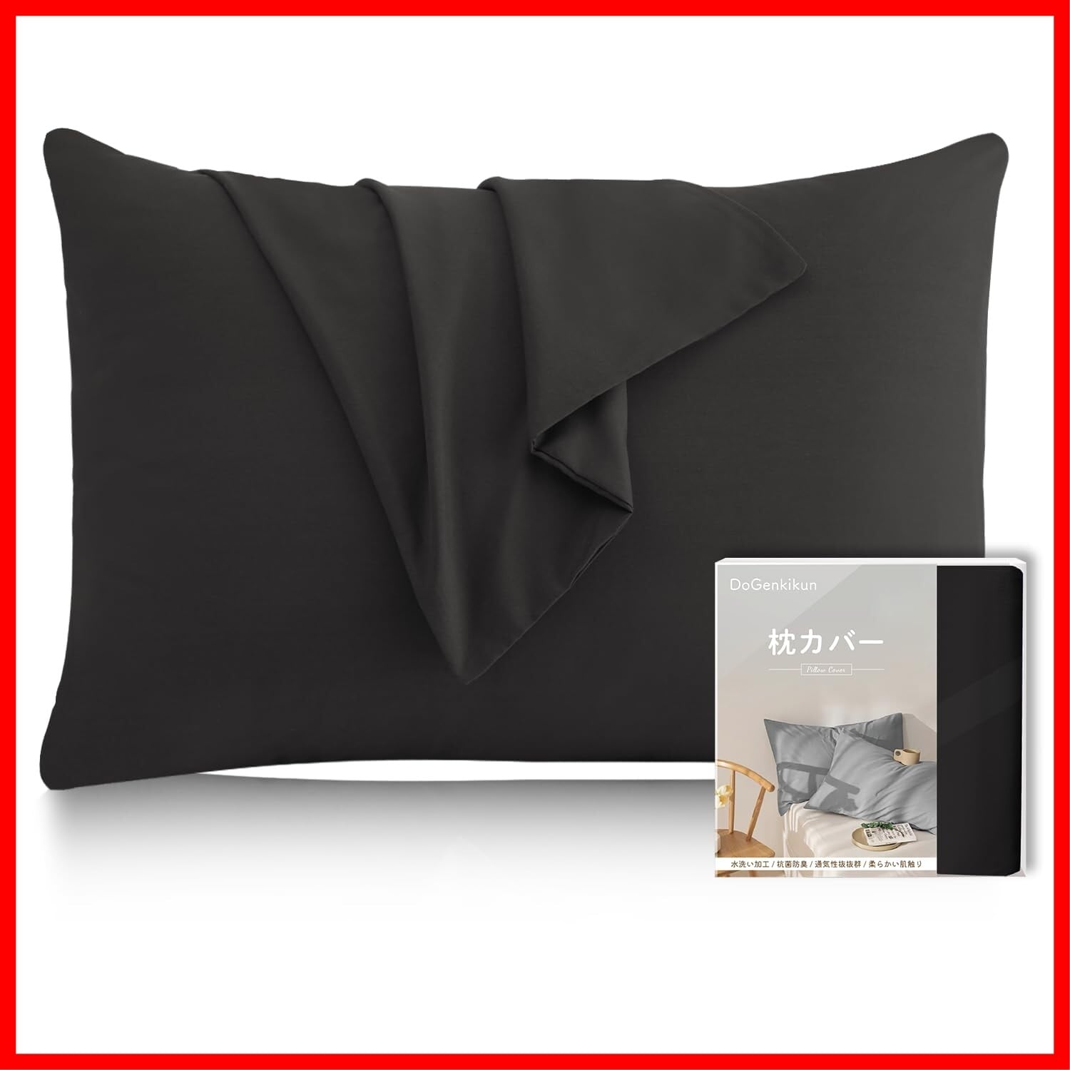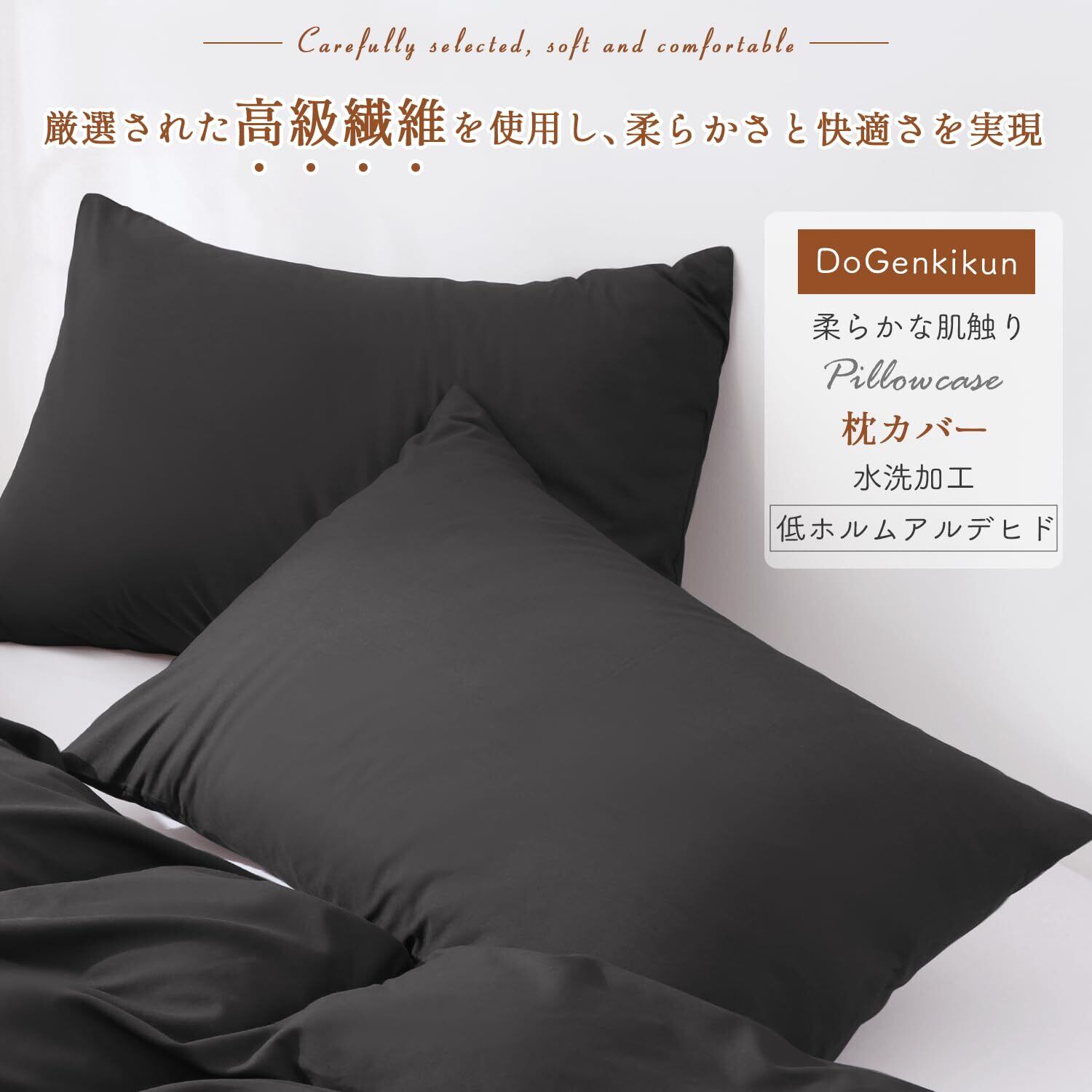 DoGenkikun 枕カバー 43 63 ピローケース まくらカバー 【防ダニ99.9%・自動消臭繊維・敏感肌専門】ホテル品質 封筒式 通気性 吸水速乾 丸洗いOK 抗菌防臭 防ダニ 肌に優しい 着脱簡単 1枚セット (43×63cm ブラック) | hananoki
