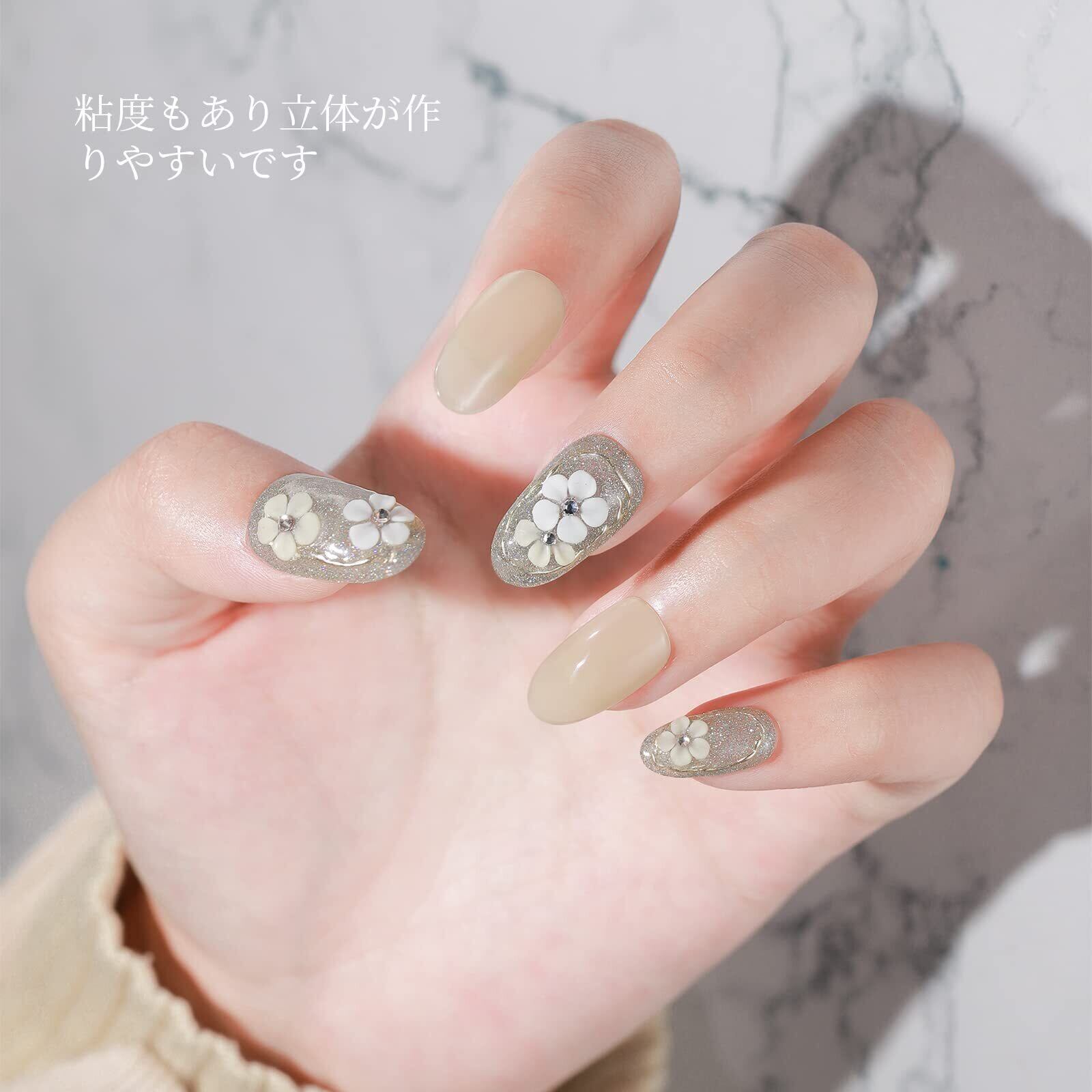 ①特徴:未硬化ジェルなし、クレイジェルはライトで硬化するまで固まりません。形状を整える時も、リキッドではなく水でOKです。初心者さんでも簡単に4Dアートできます。クレイジェルは硬化するまでなんでもやり直しできます。