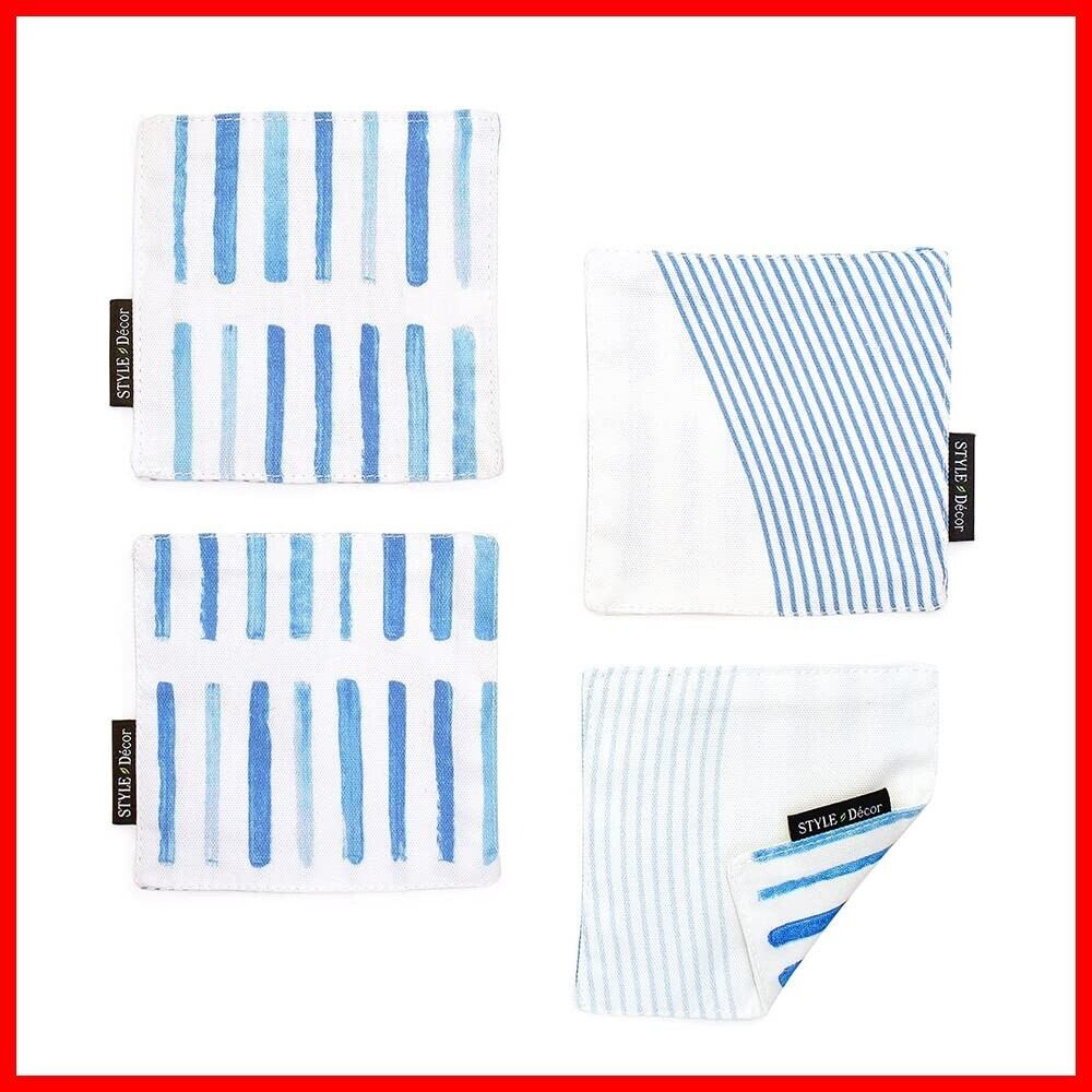スタイルデコール(STYLE Decor) コースター リバーシブル おしゃれ 布 4枚セット 洗える 北欧 マリン ブルー W3000120